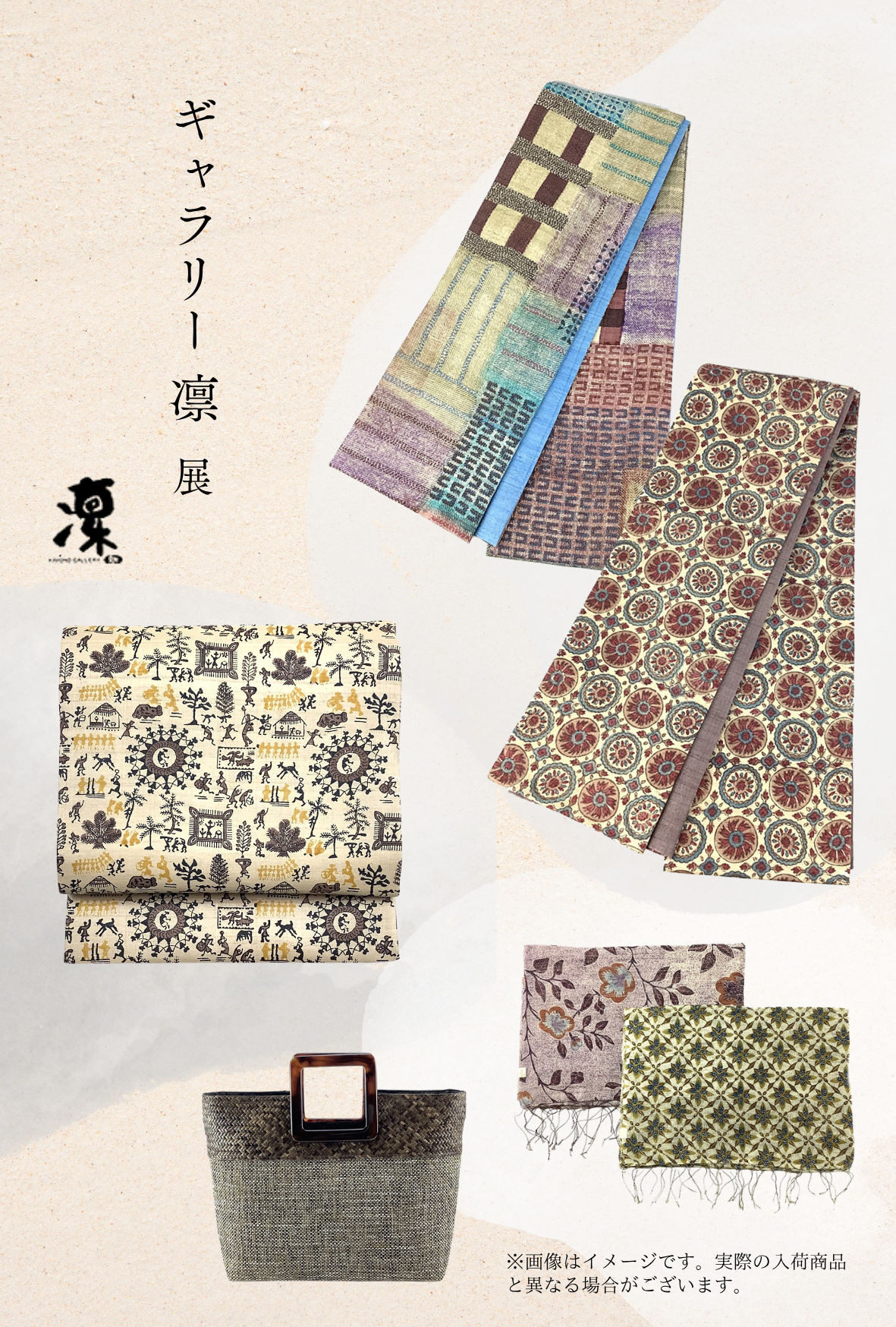 【荒川眞理子】- たからものⅡ - 型絵染 九寸名古屋帯〈当店別注色〉