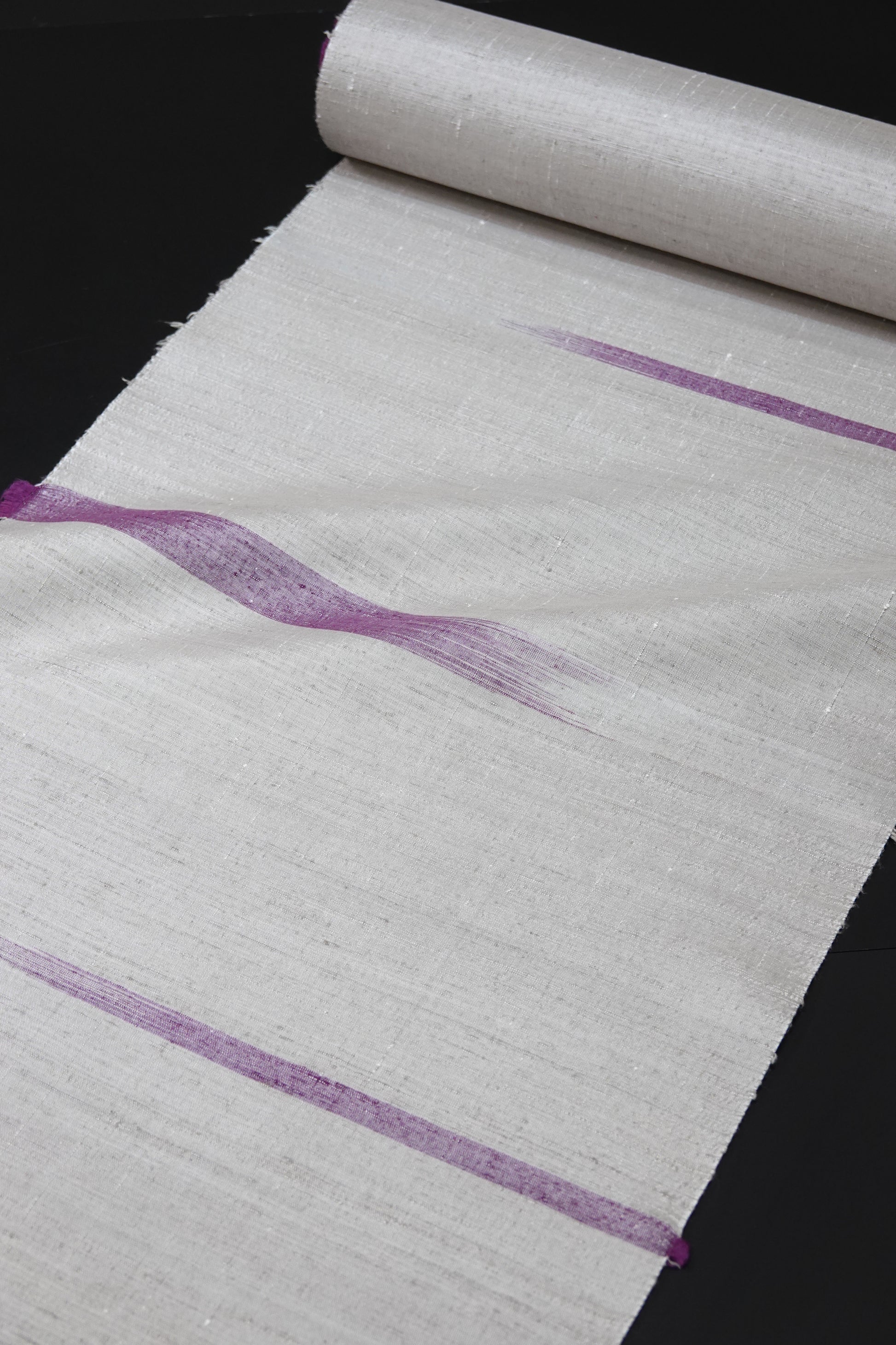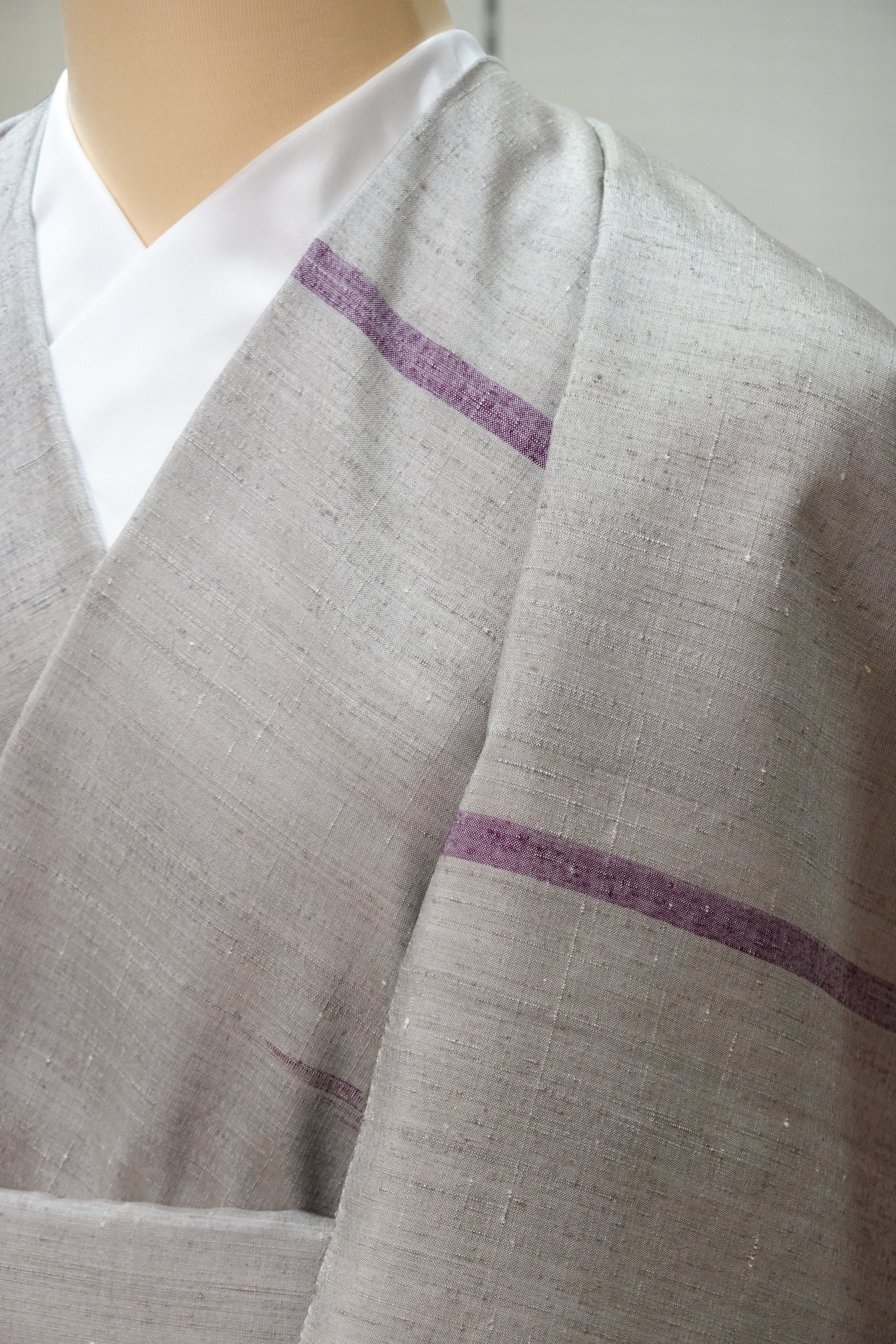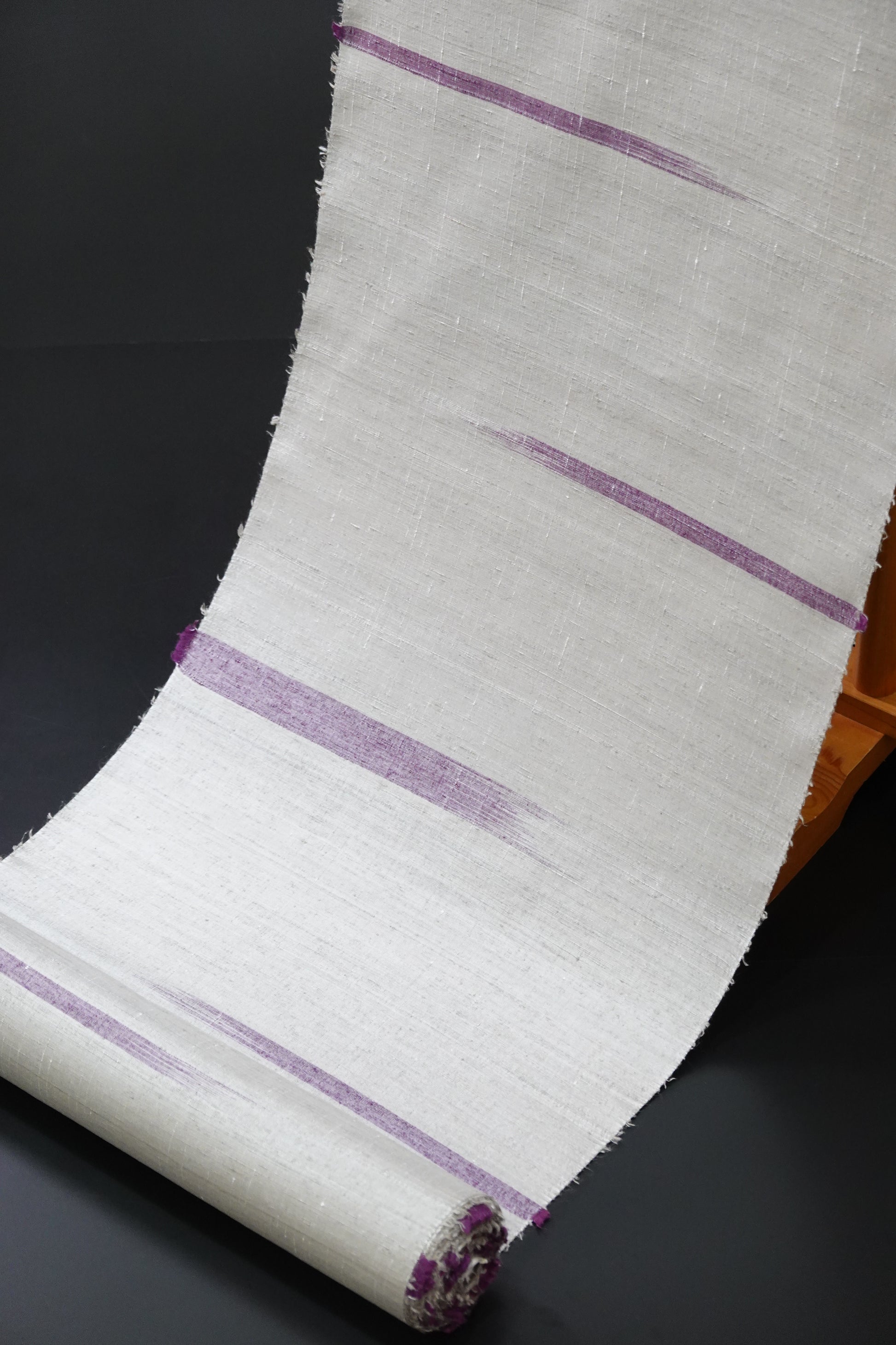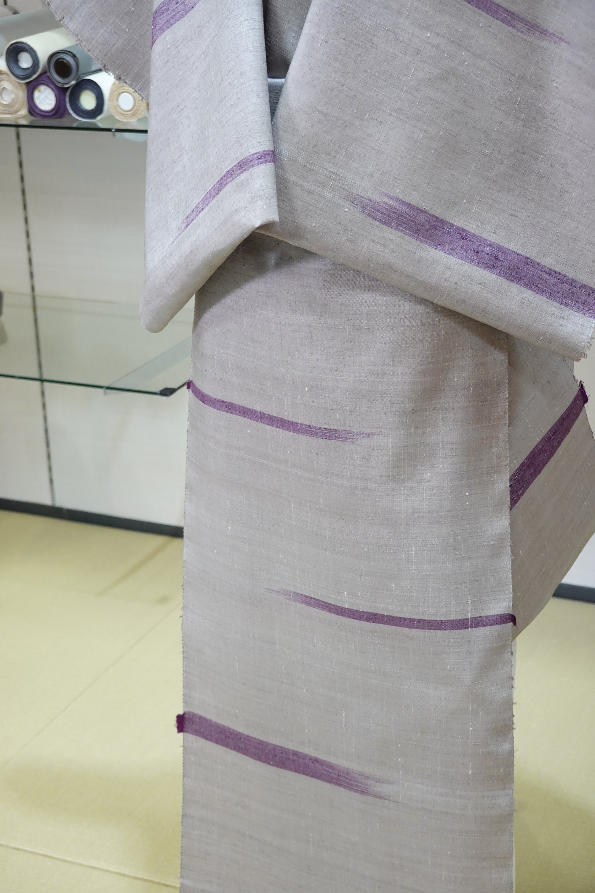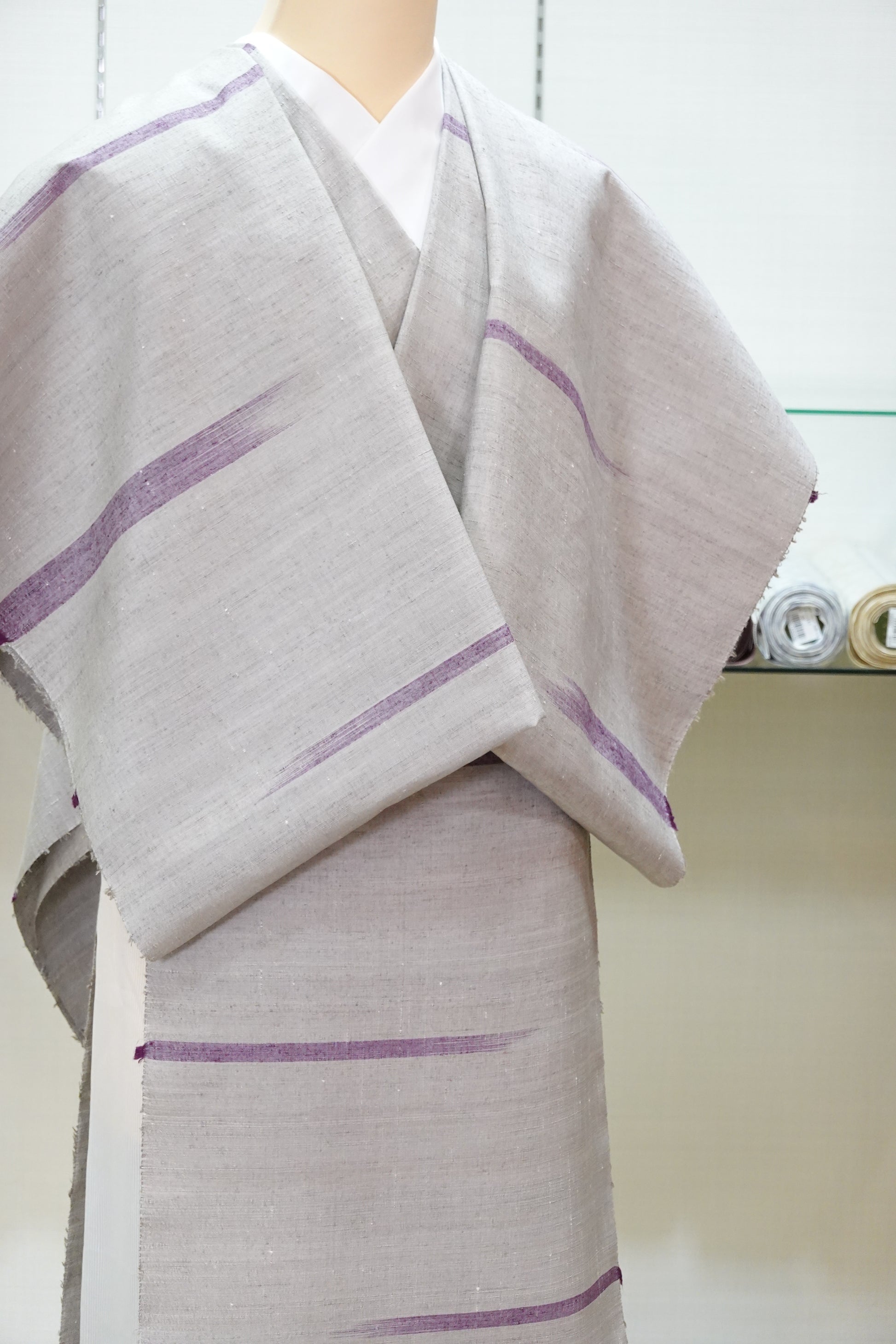 【伊那紬】霞絣の段 真綿紬 着尺 グレー地に紫【久保田織染工業】