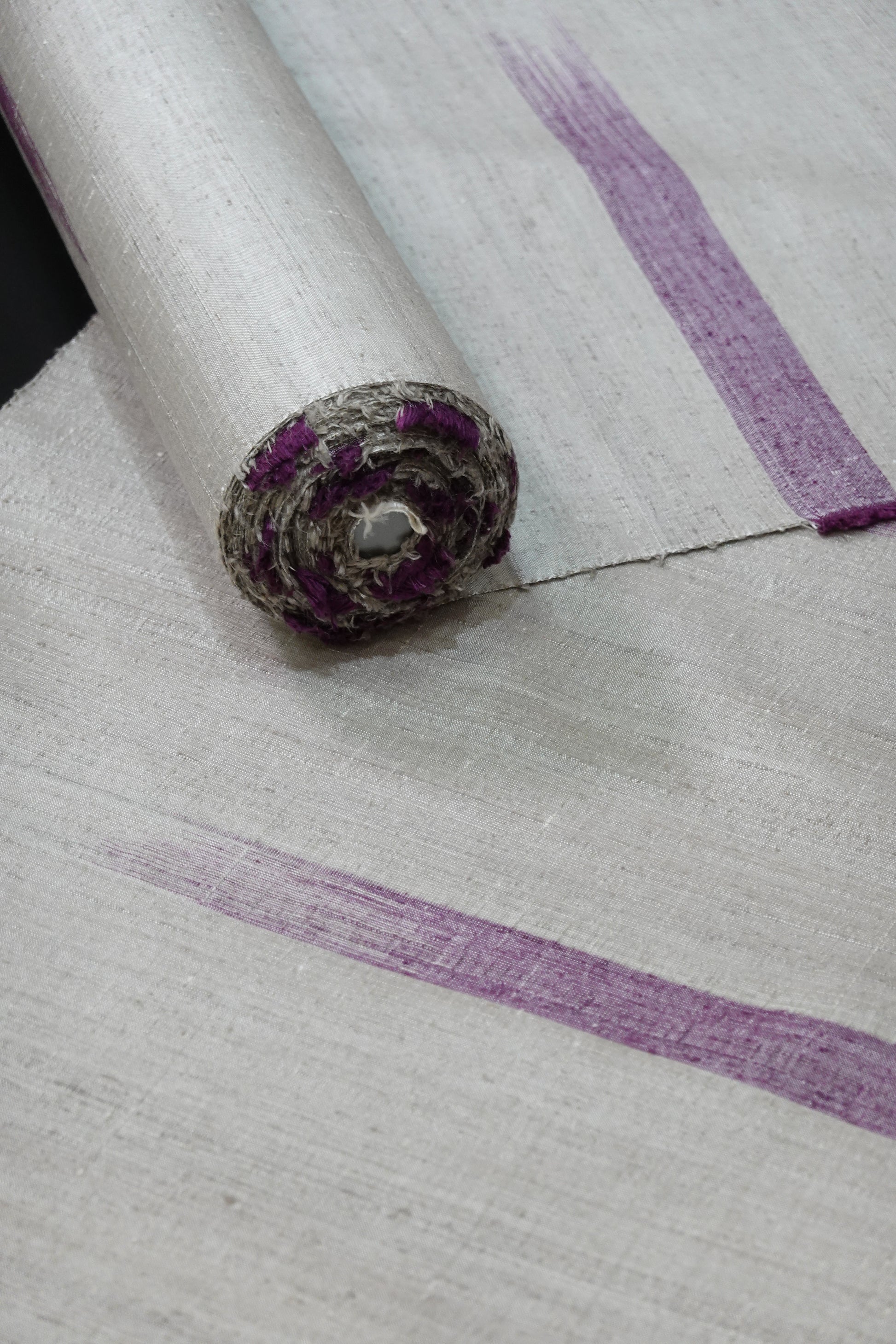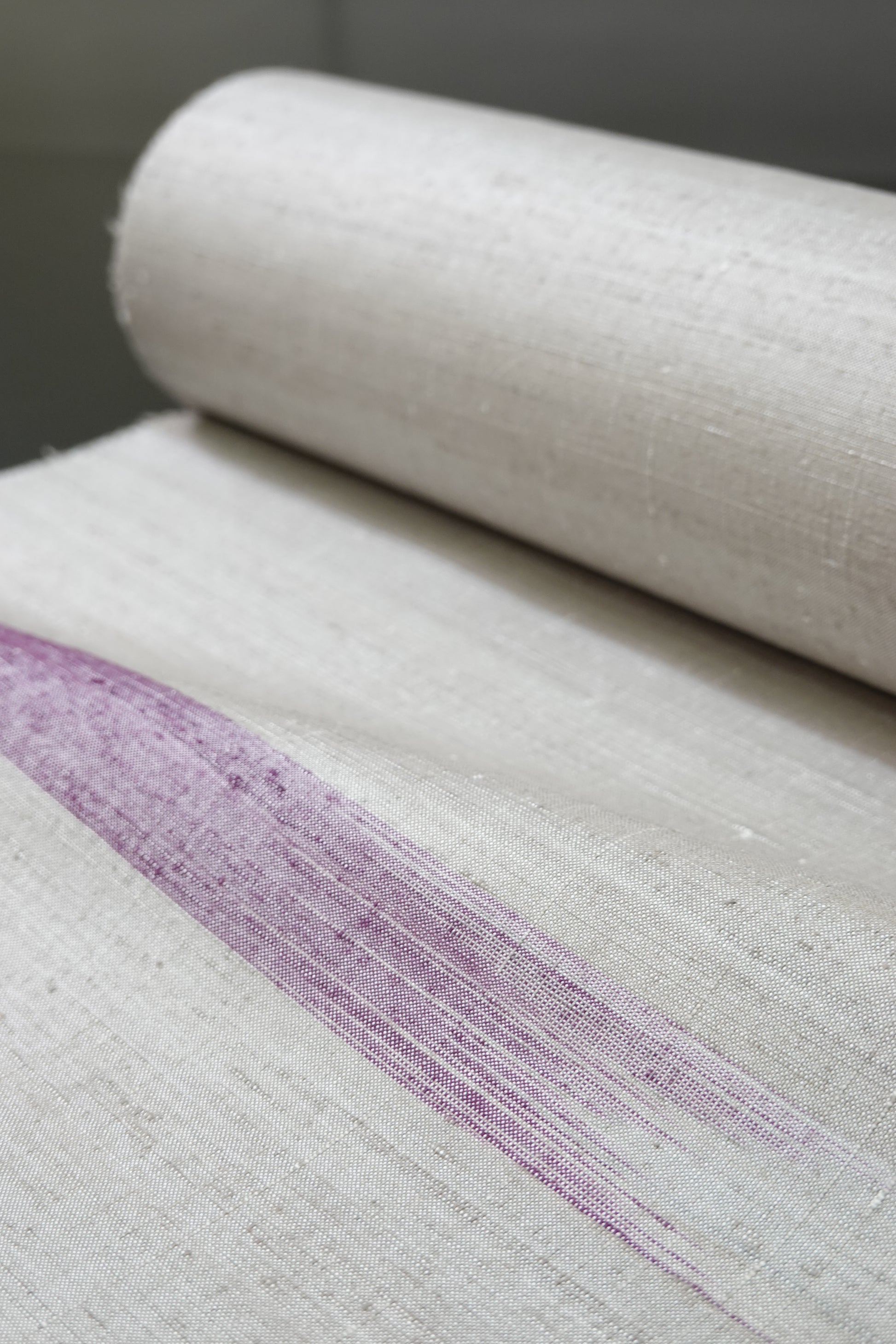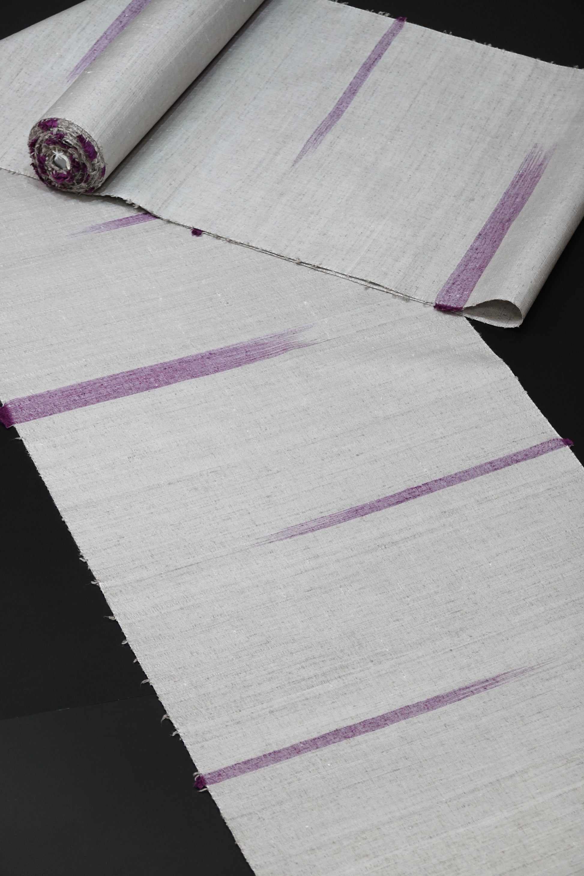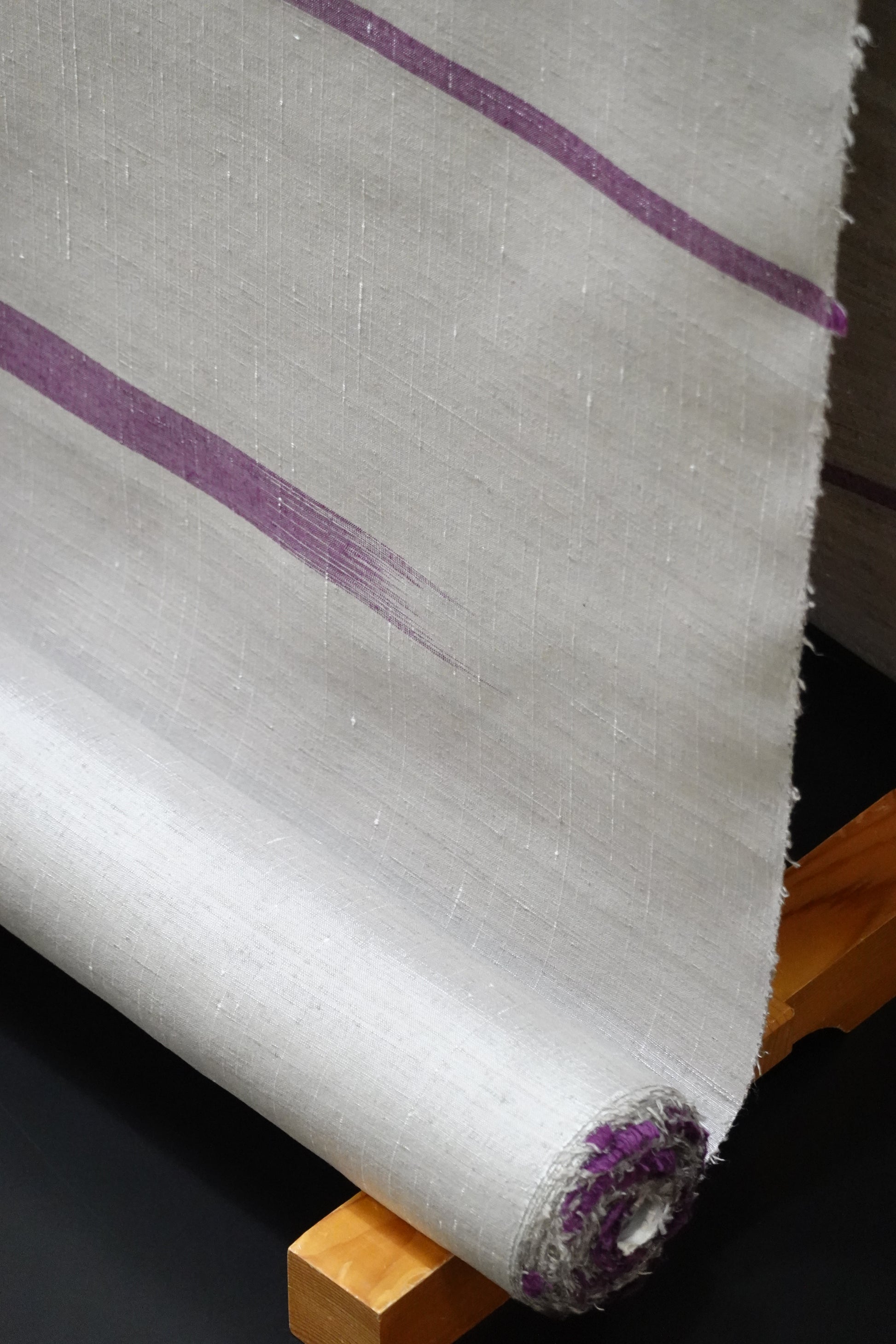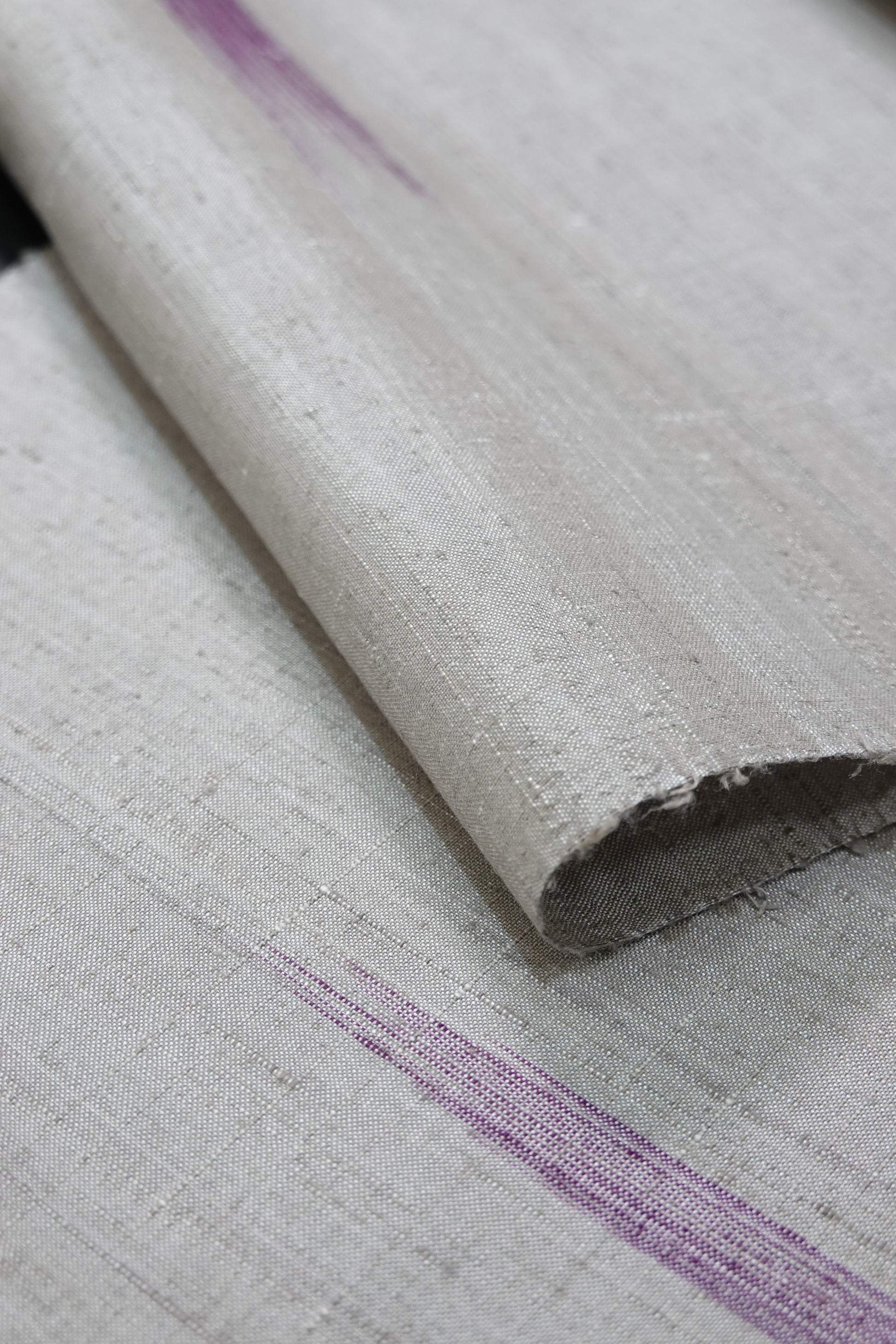【伊那紬】霞絣の段 真綿紬 着尺 グレー地に紫【久保田織染工業】