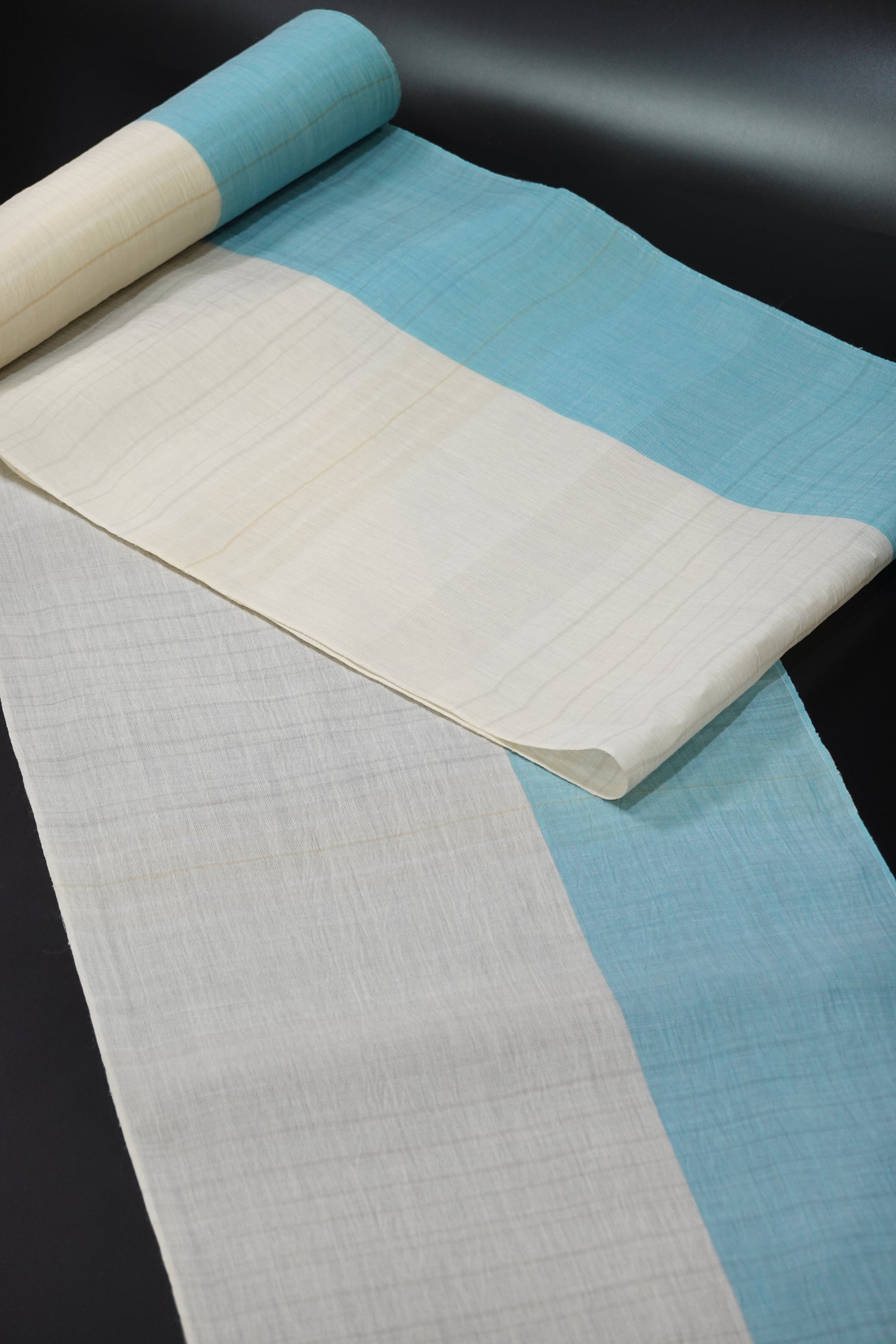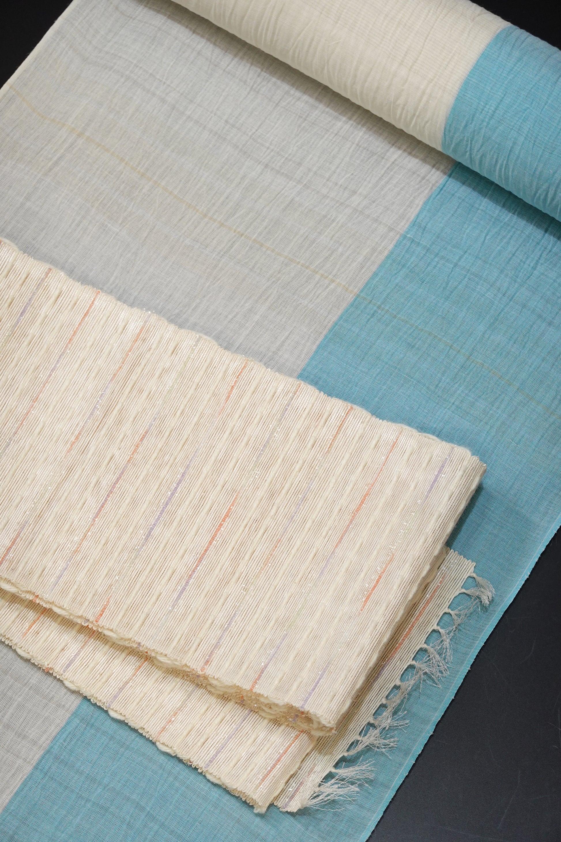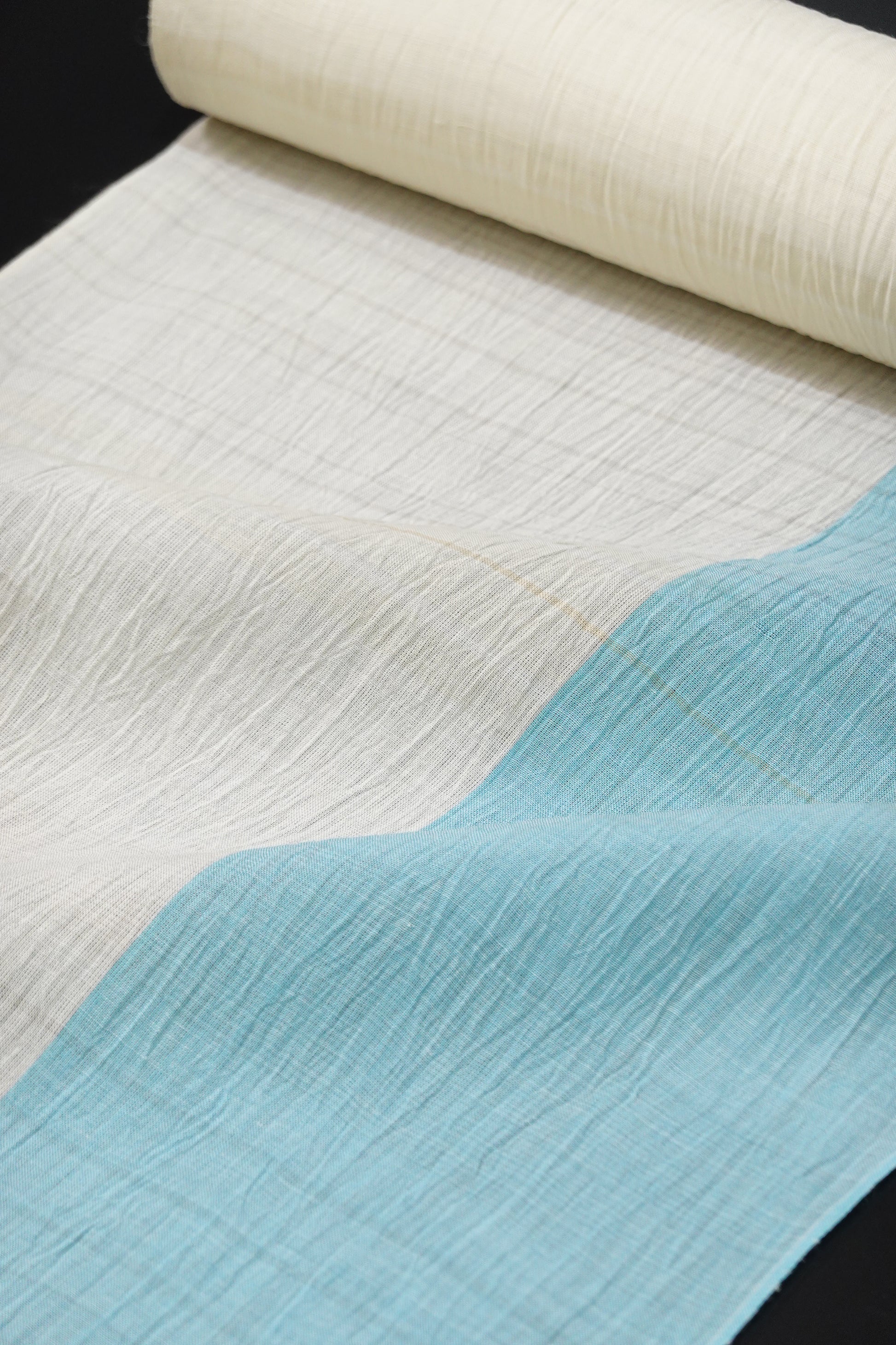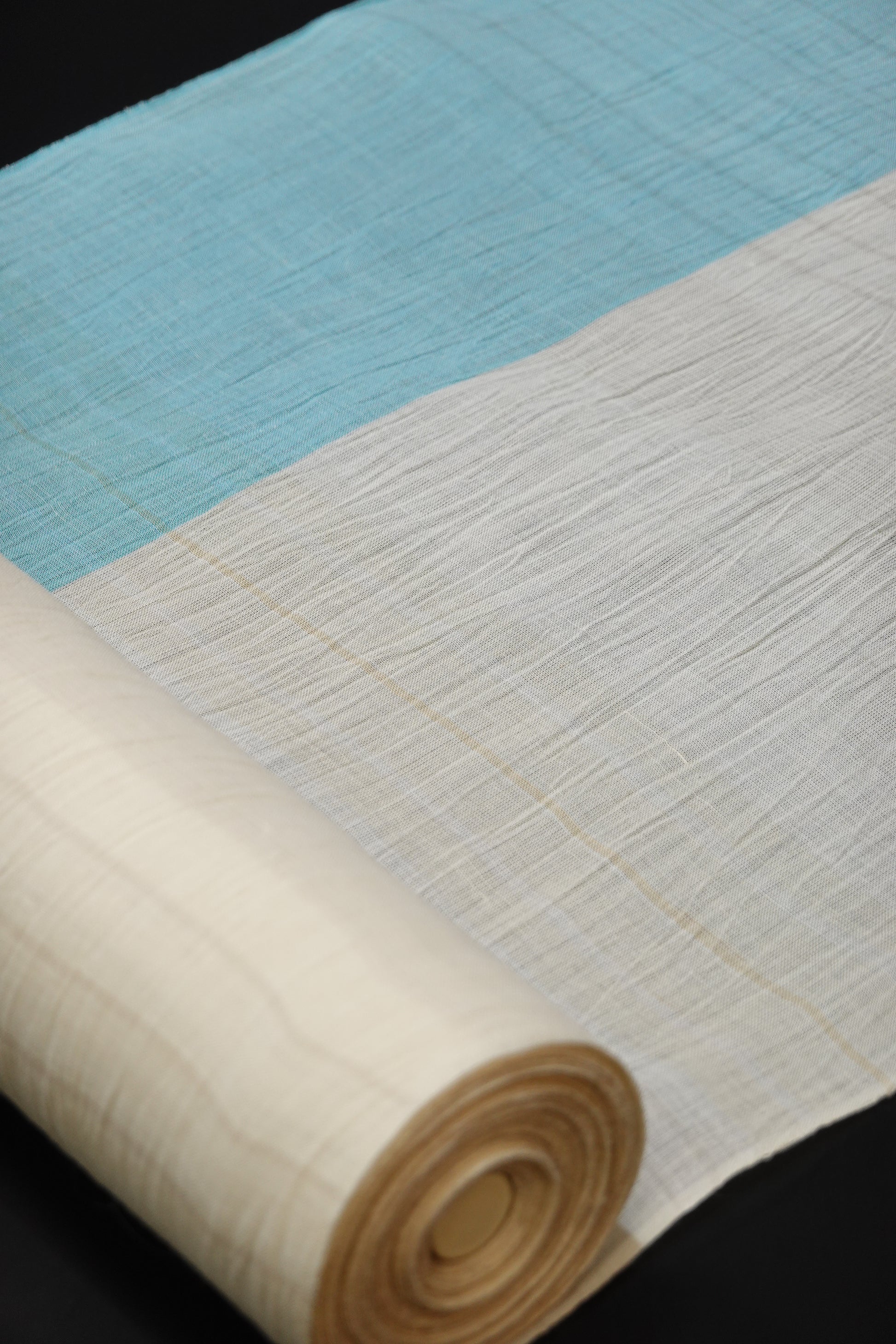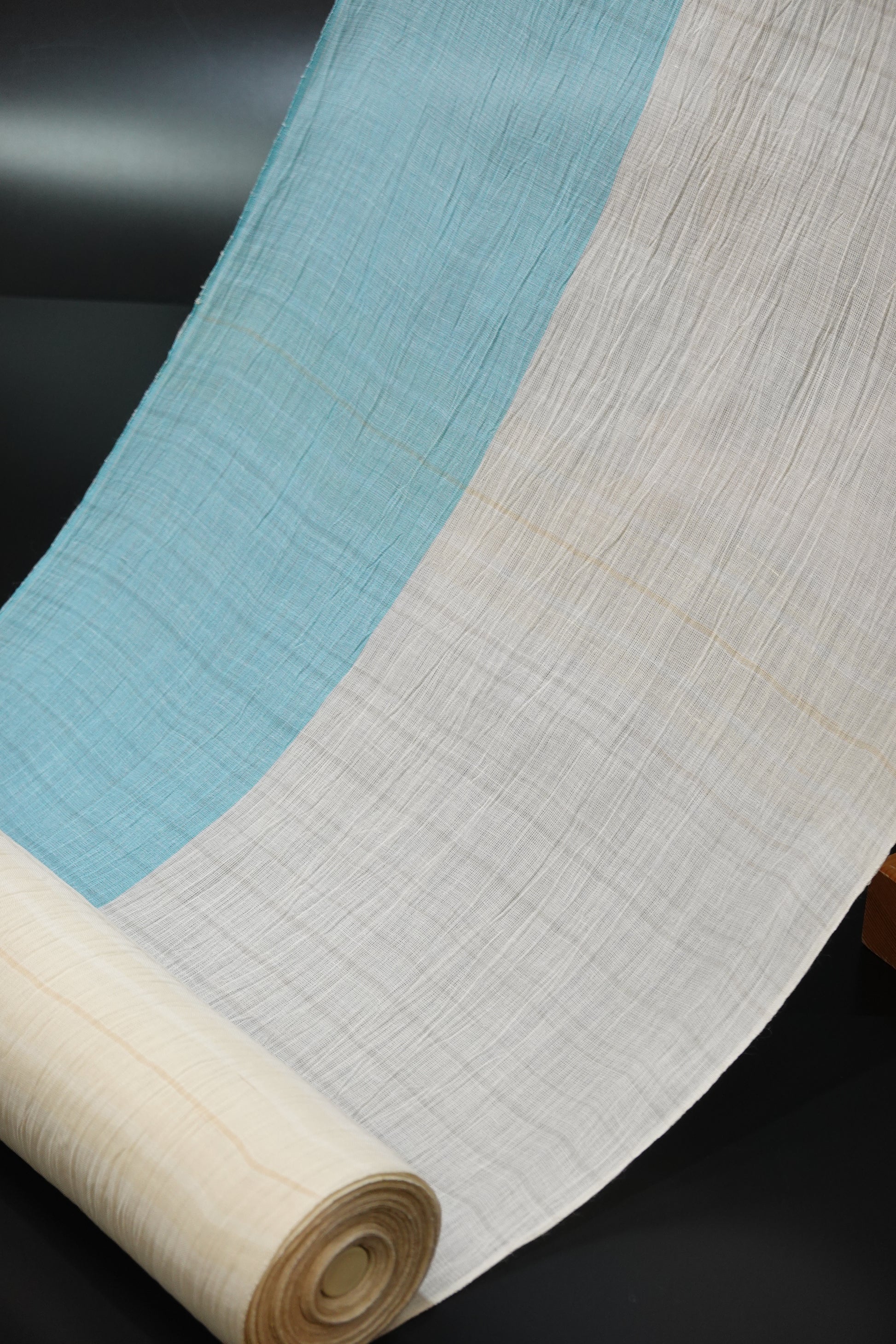 バイカラーの色味から涼しい小千谷ちぢみ。