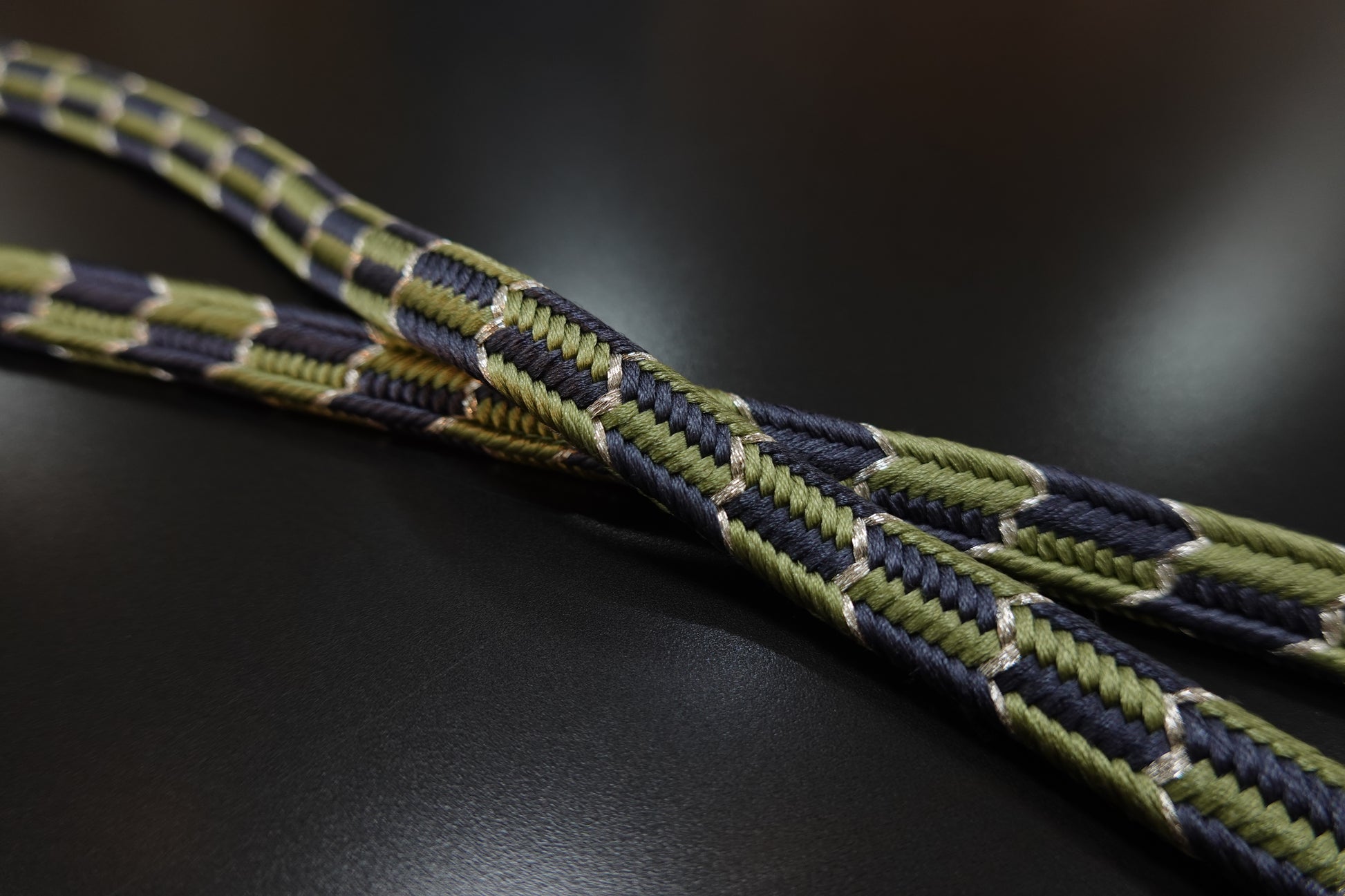 〈翠嵐工房〉帯締め 御岳組 市松 銀糸入り 緑×紺 撚り房