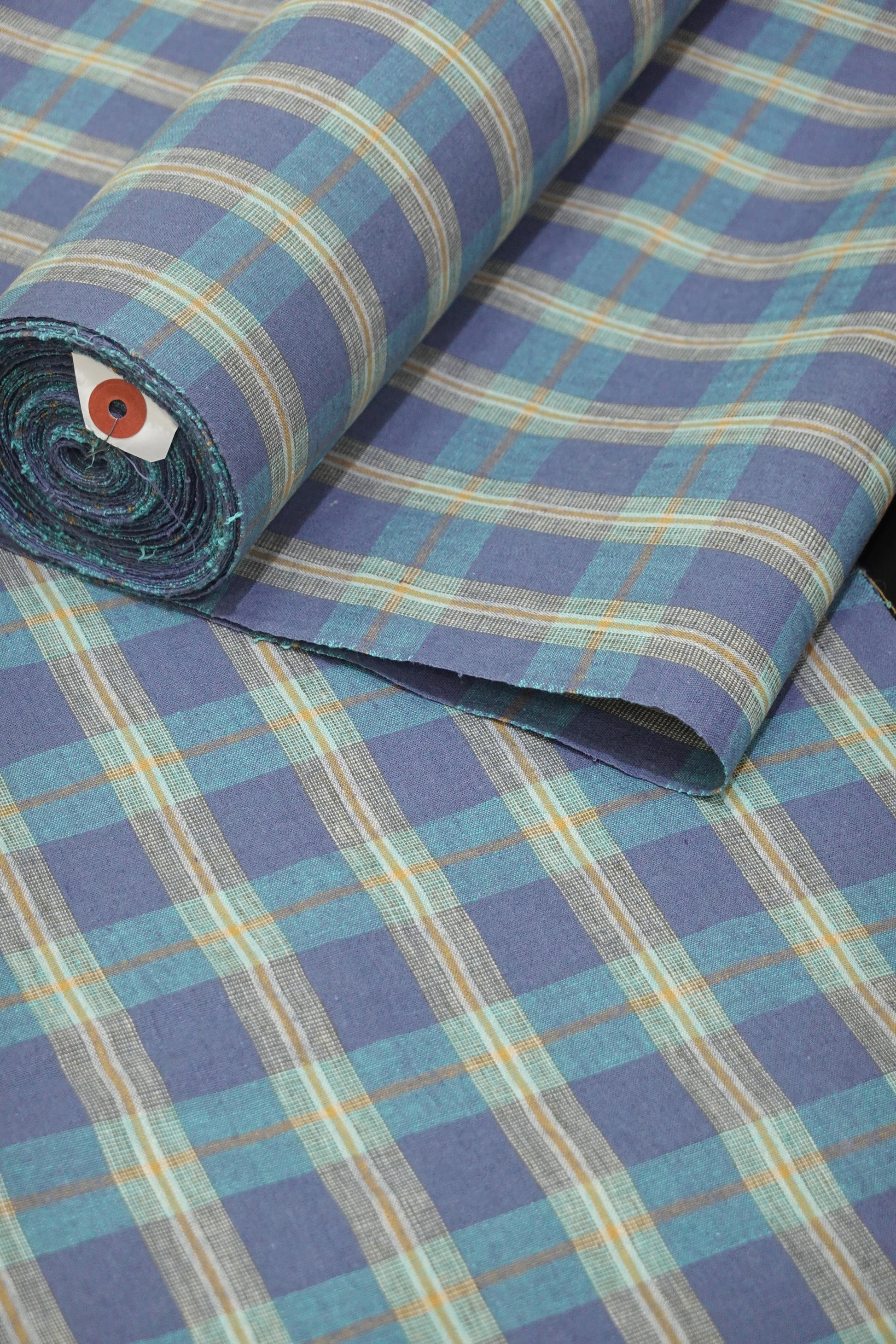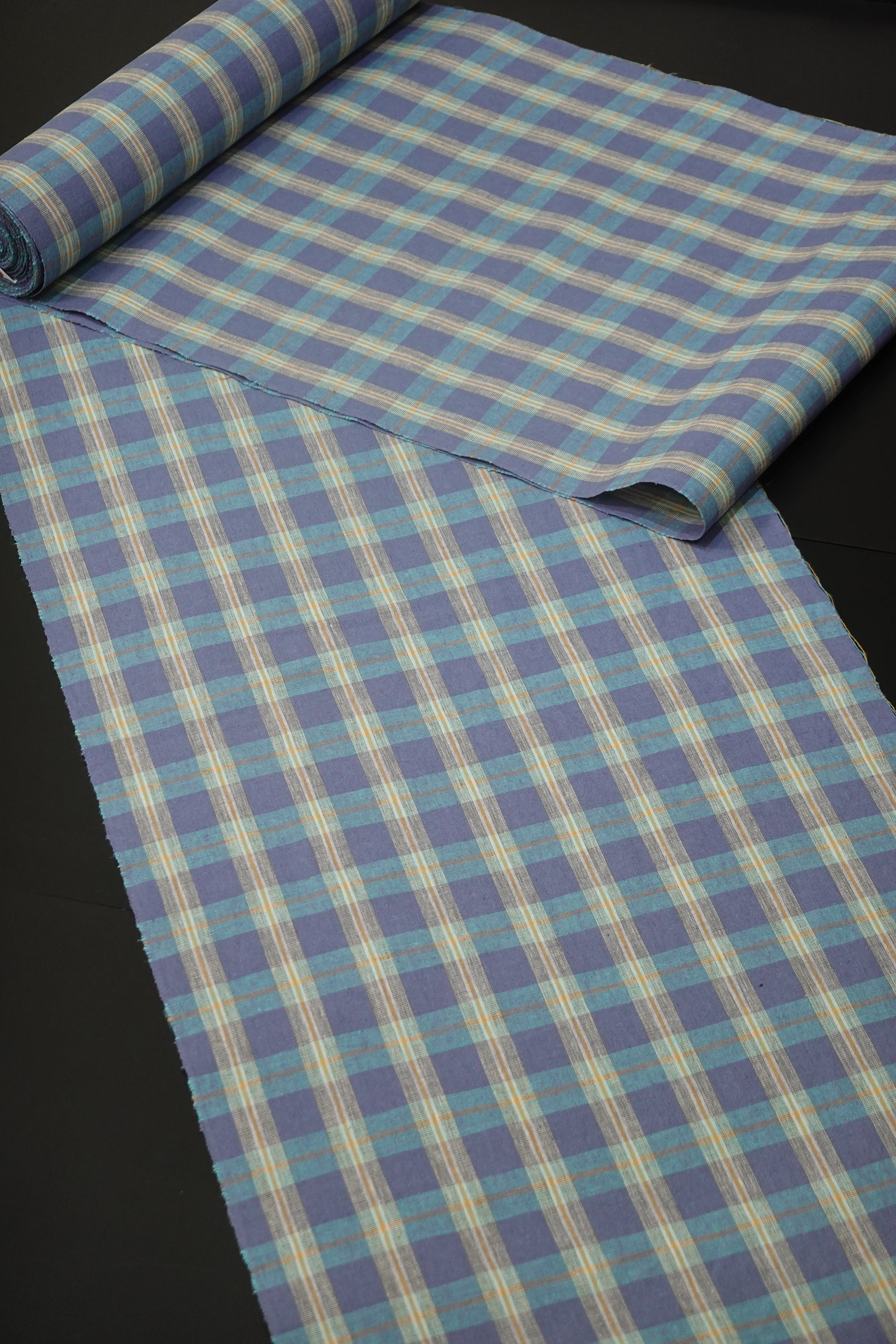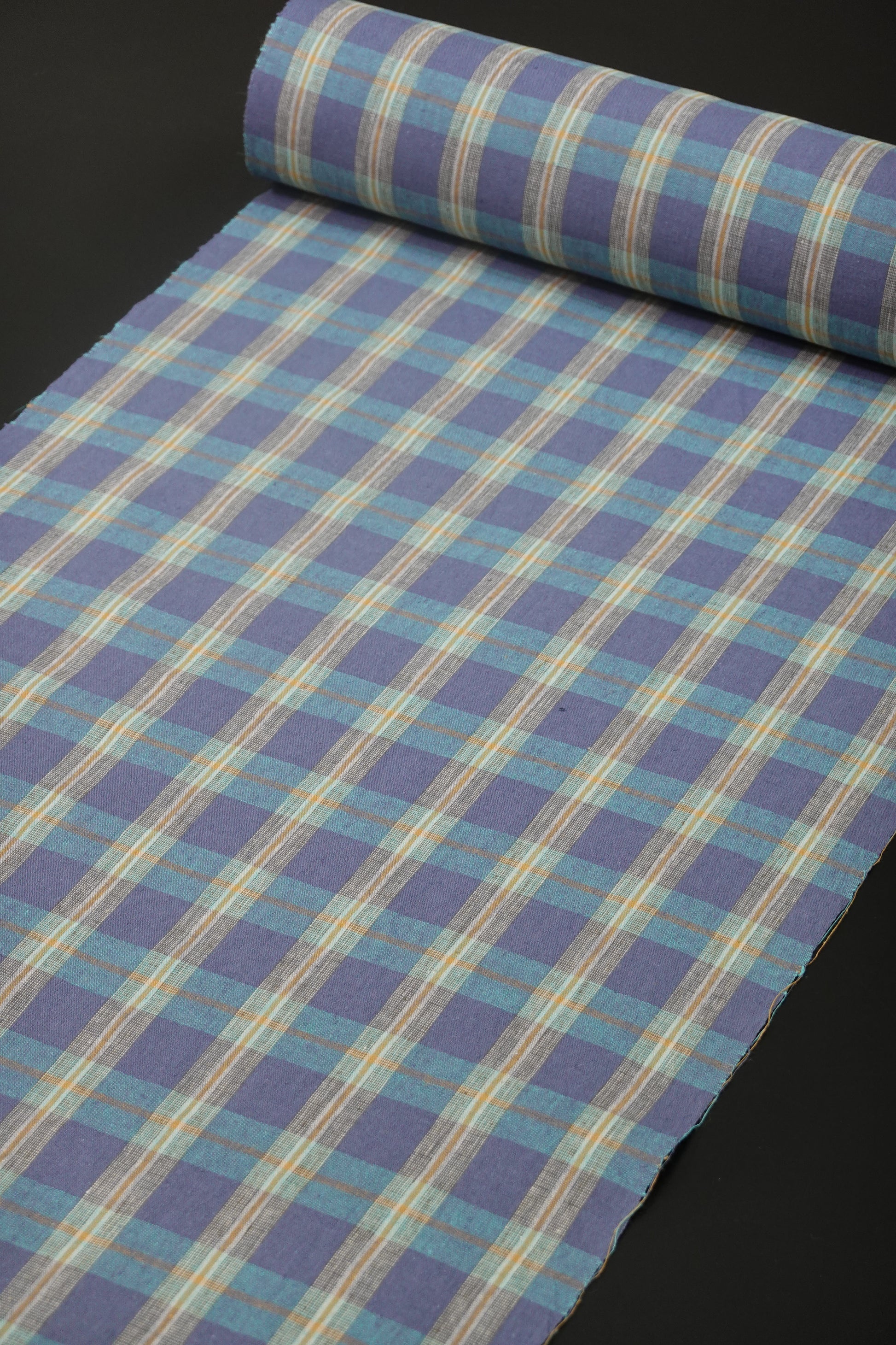 【臼井織布】伊勢木綿 綿麻 越格子 青藤色