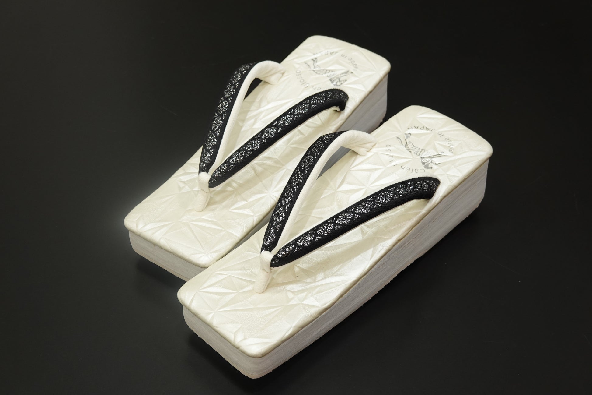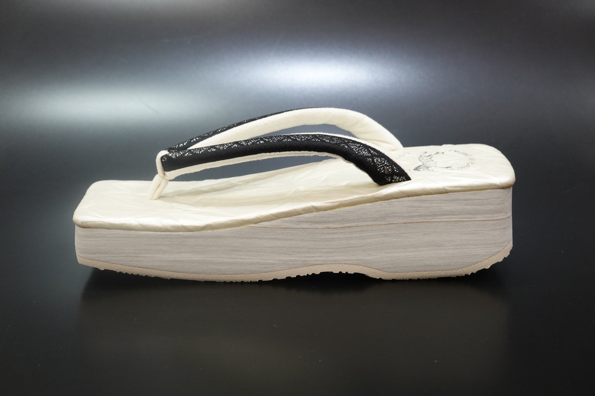 【菱屋カレンブロッソ】スクエア カフェぞうり M 博多織鼻緒黒/白台
