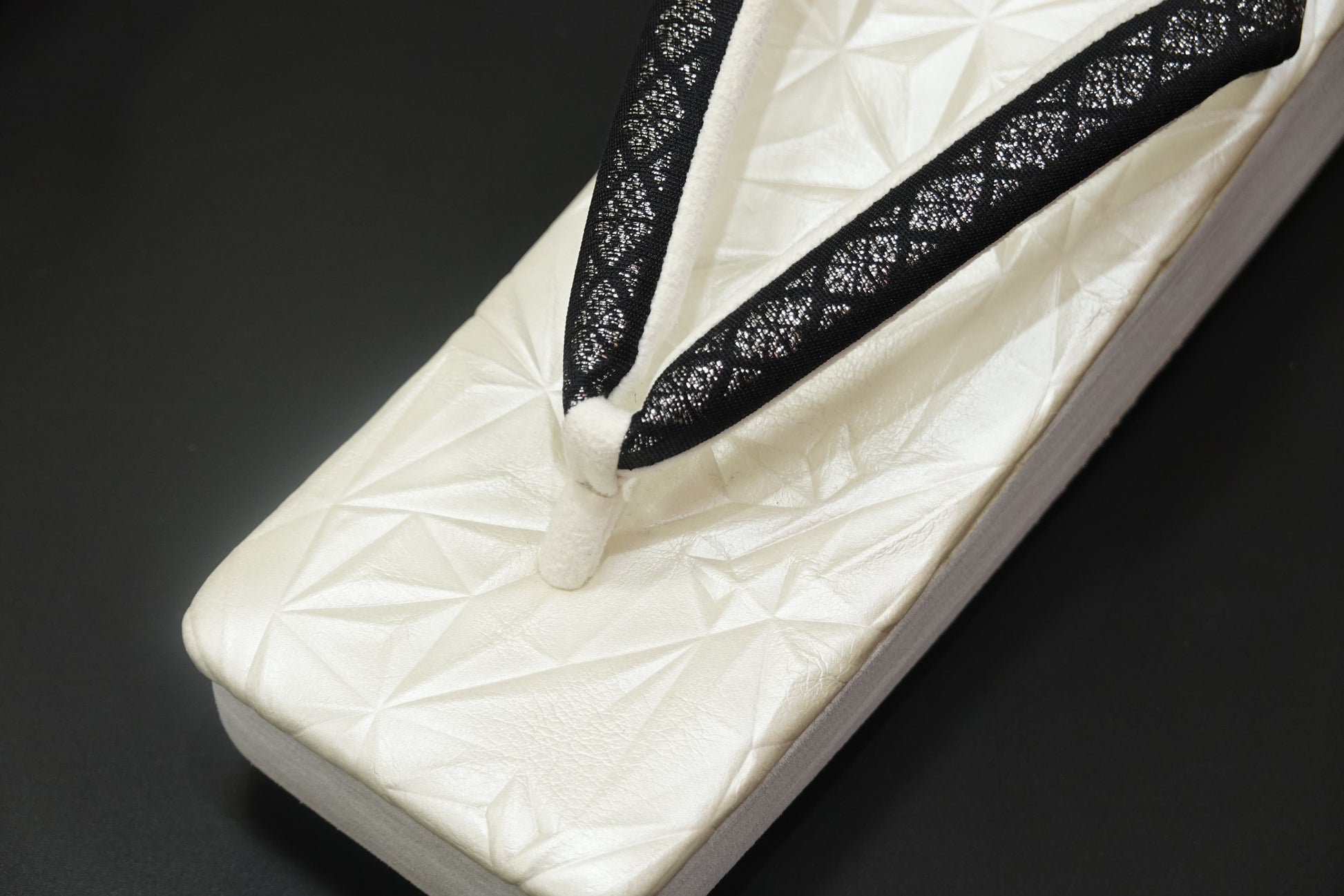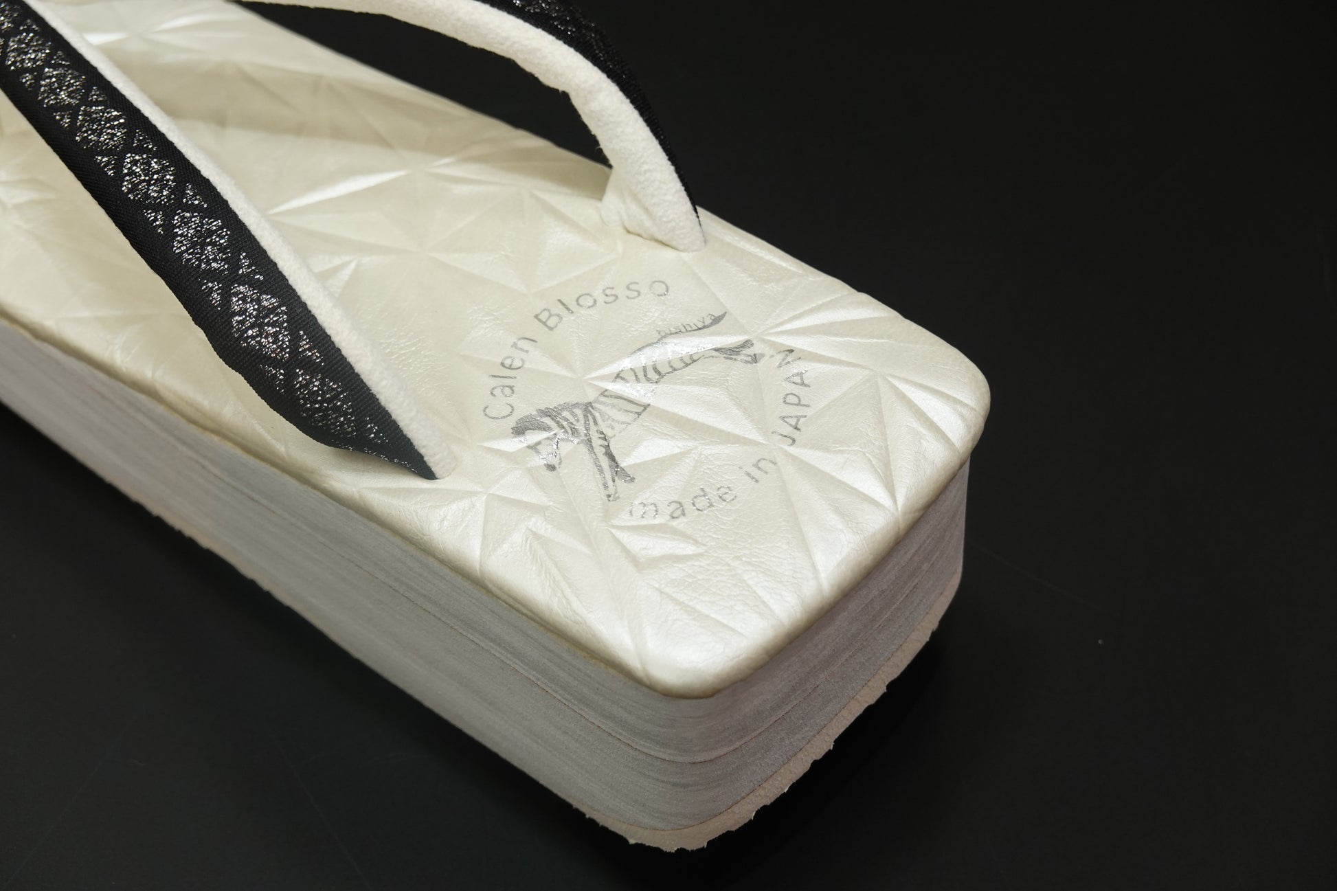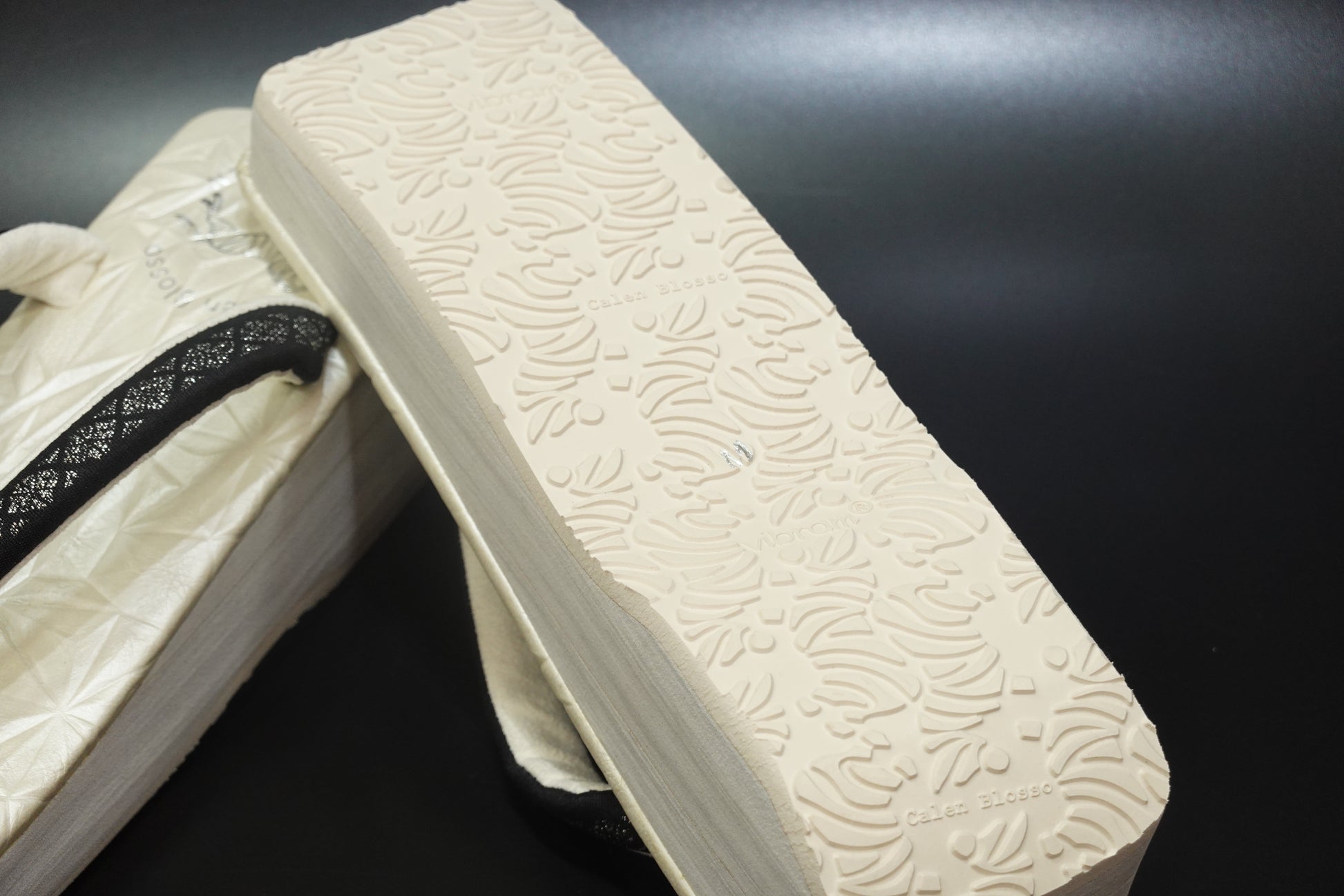 ●台にはEVA素材(合成樹脂)を使用し、鼻緒スゲ込みのため、雨の中で台が路面の水を吸い上げて足袋や足元を汚すという心配がありません。