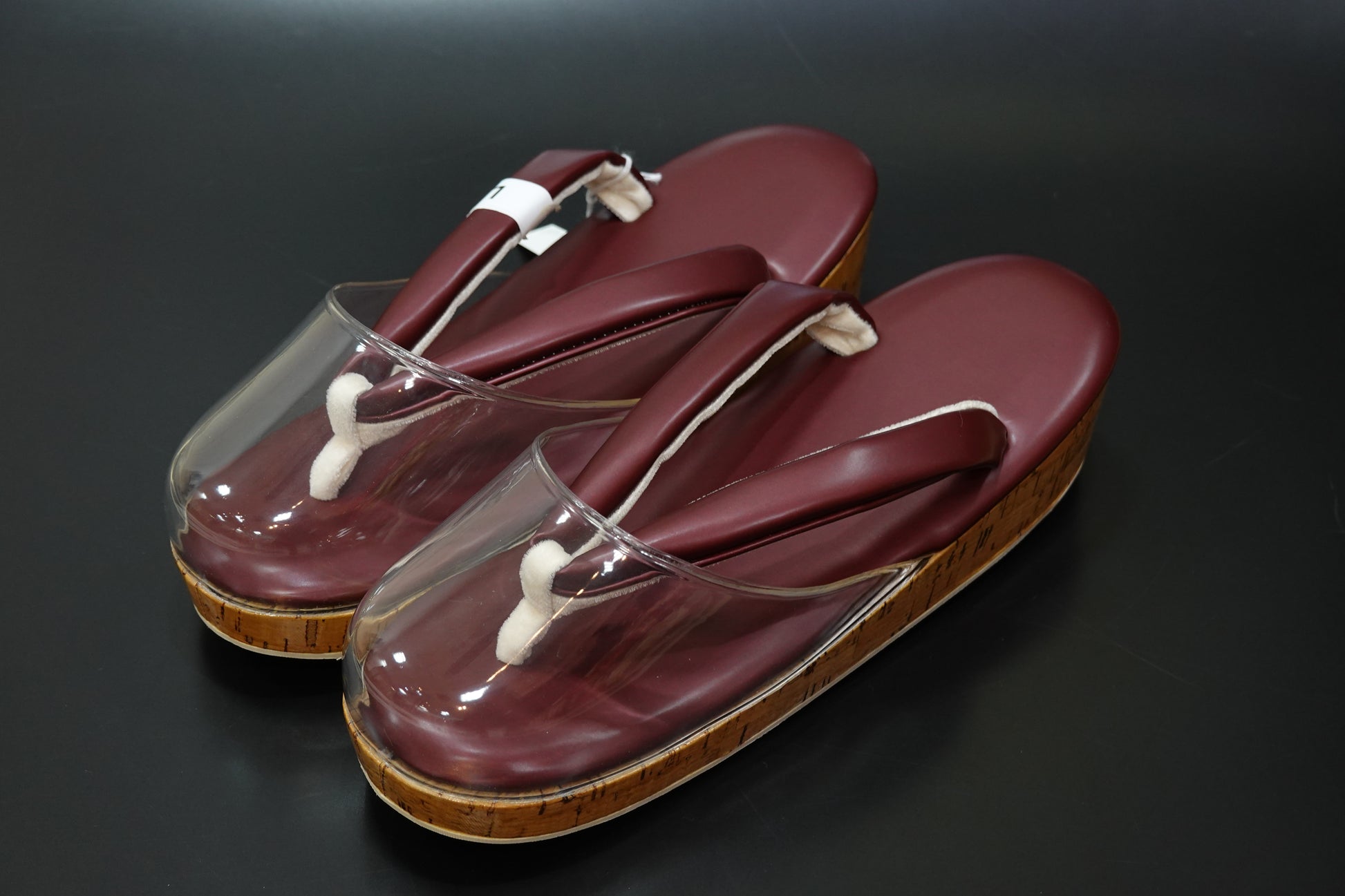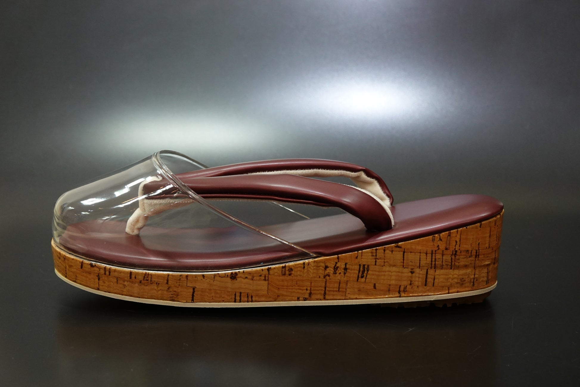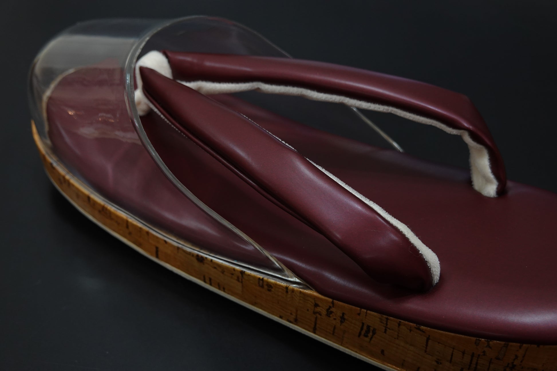 【襟の衿秀】雨草履 合皮 ボルドー L 時雨履き