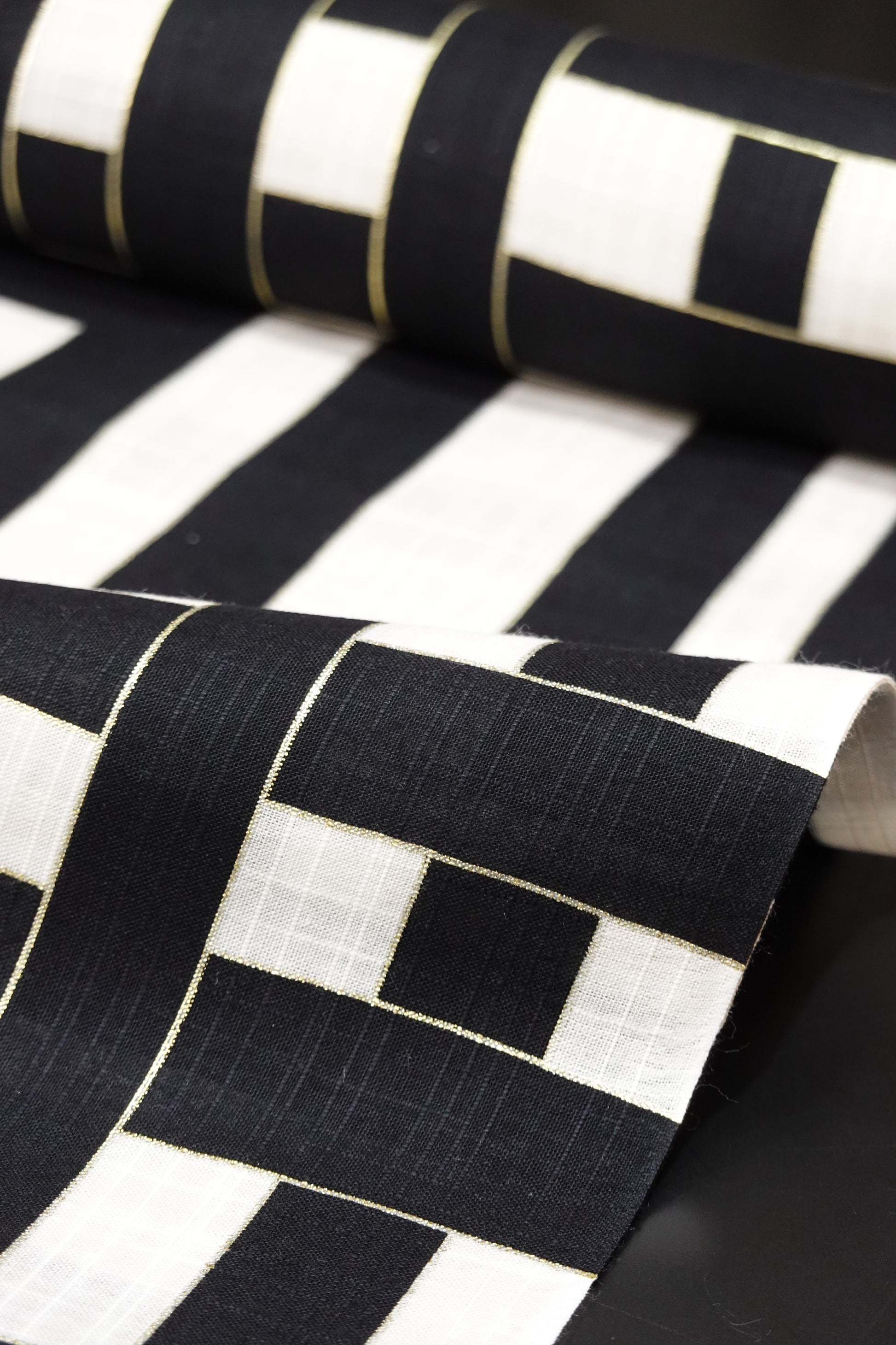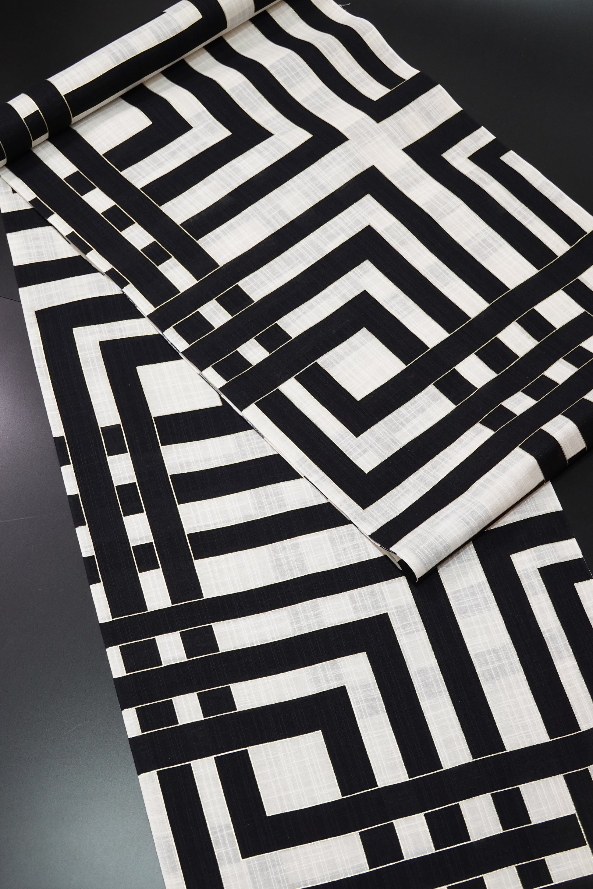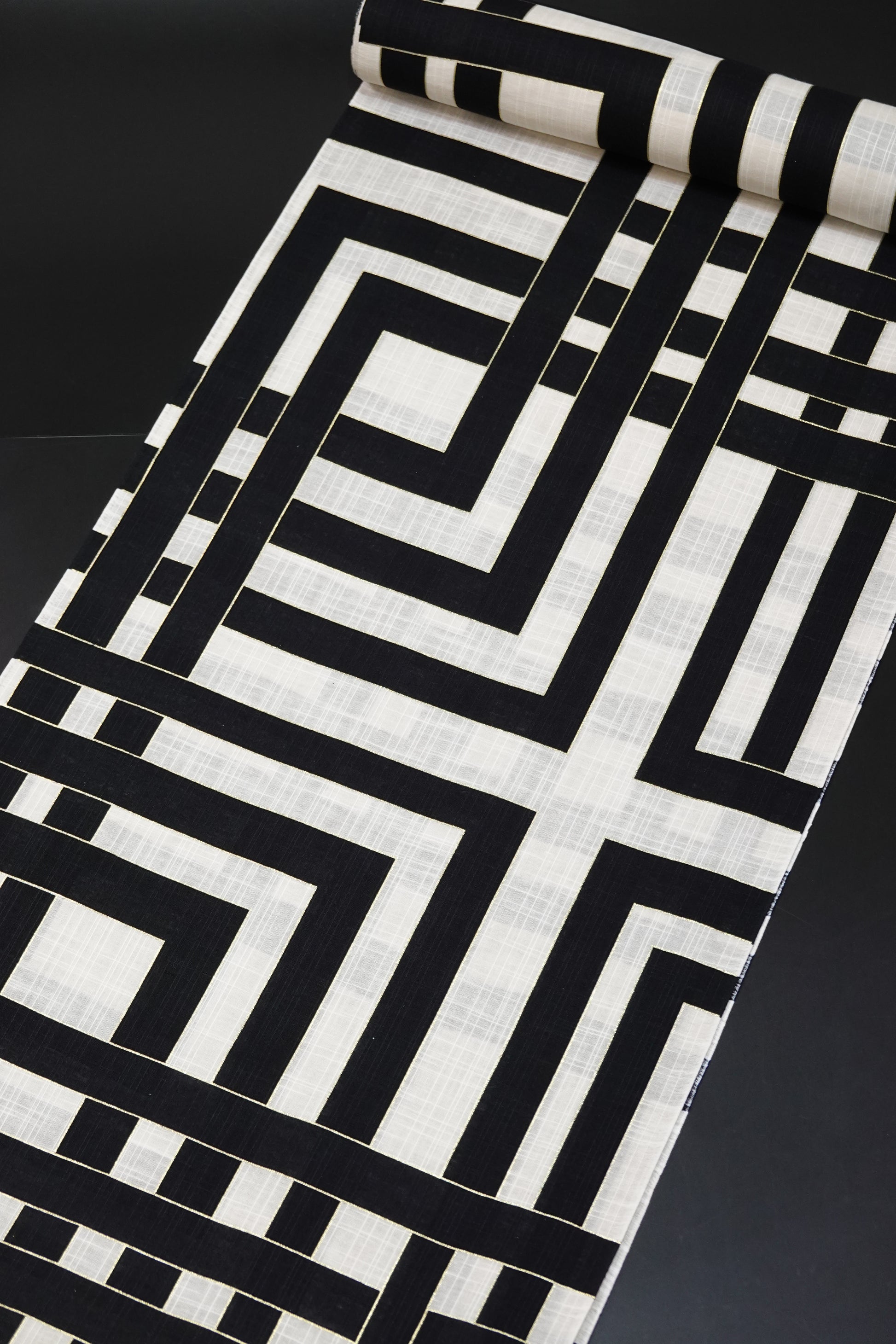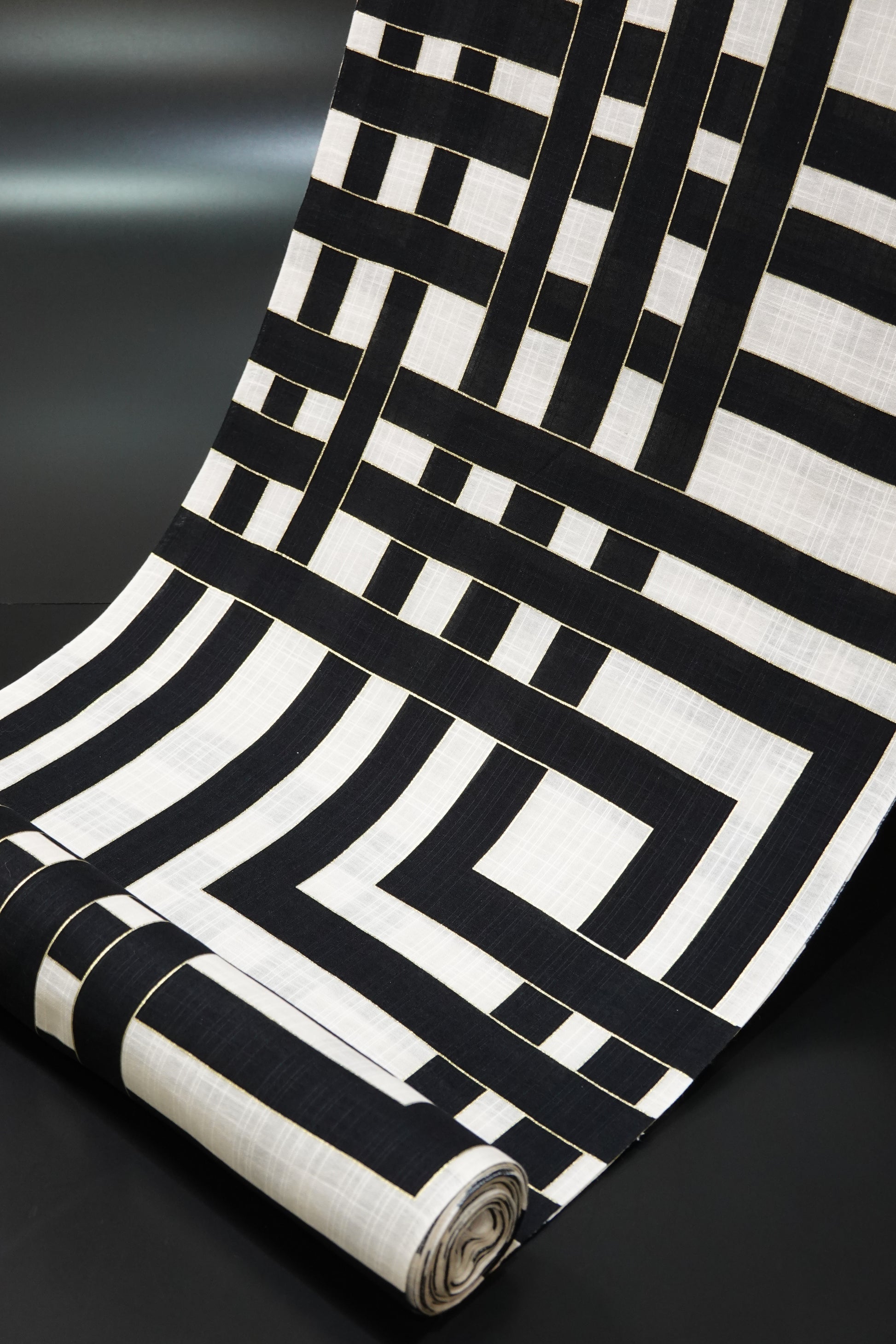 【誉田屋源兵衛】浴衣地『喜左エ門』白地に黒〈綿 麻〉