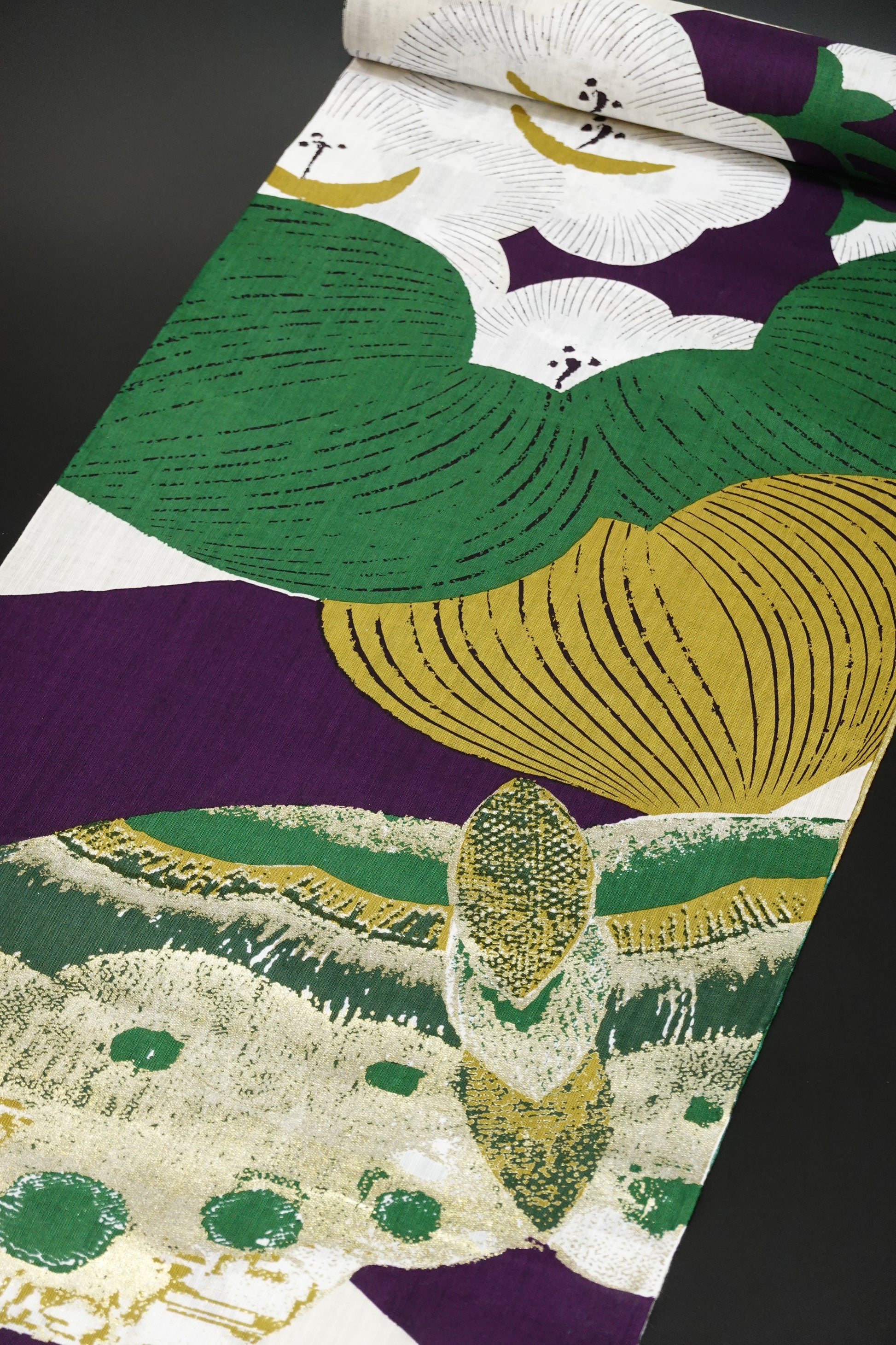 【誉田屋源兵衛】浴衣地『梅花抄』緑/紫〈綿麻〉