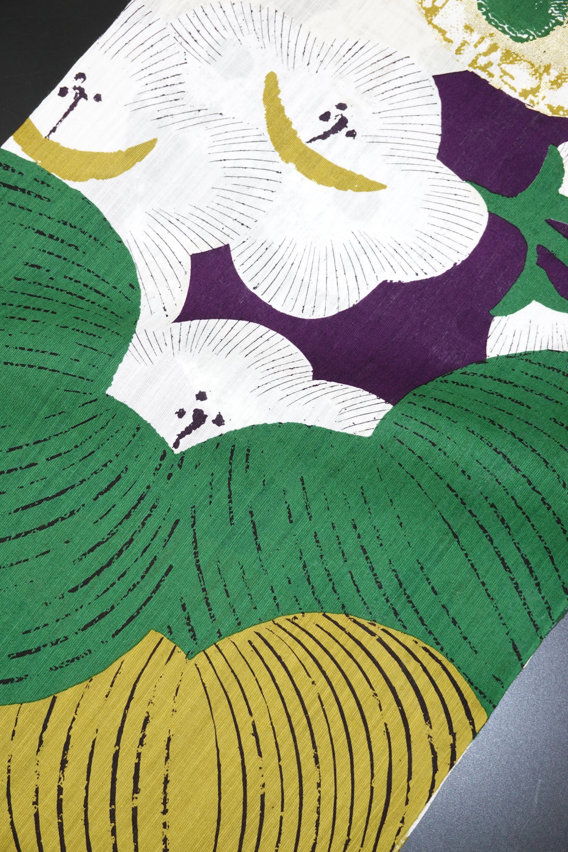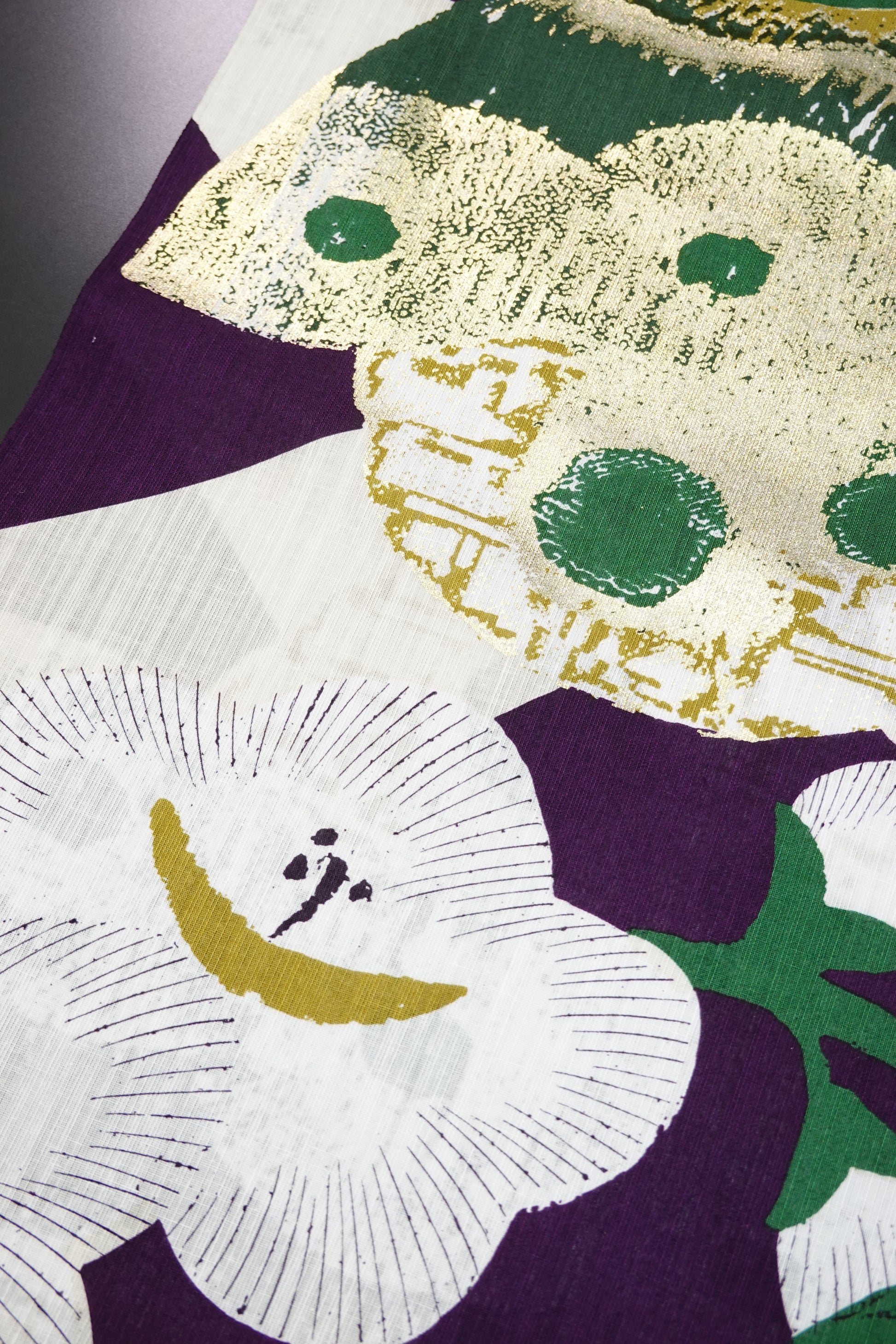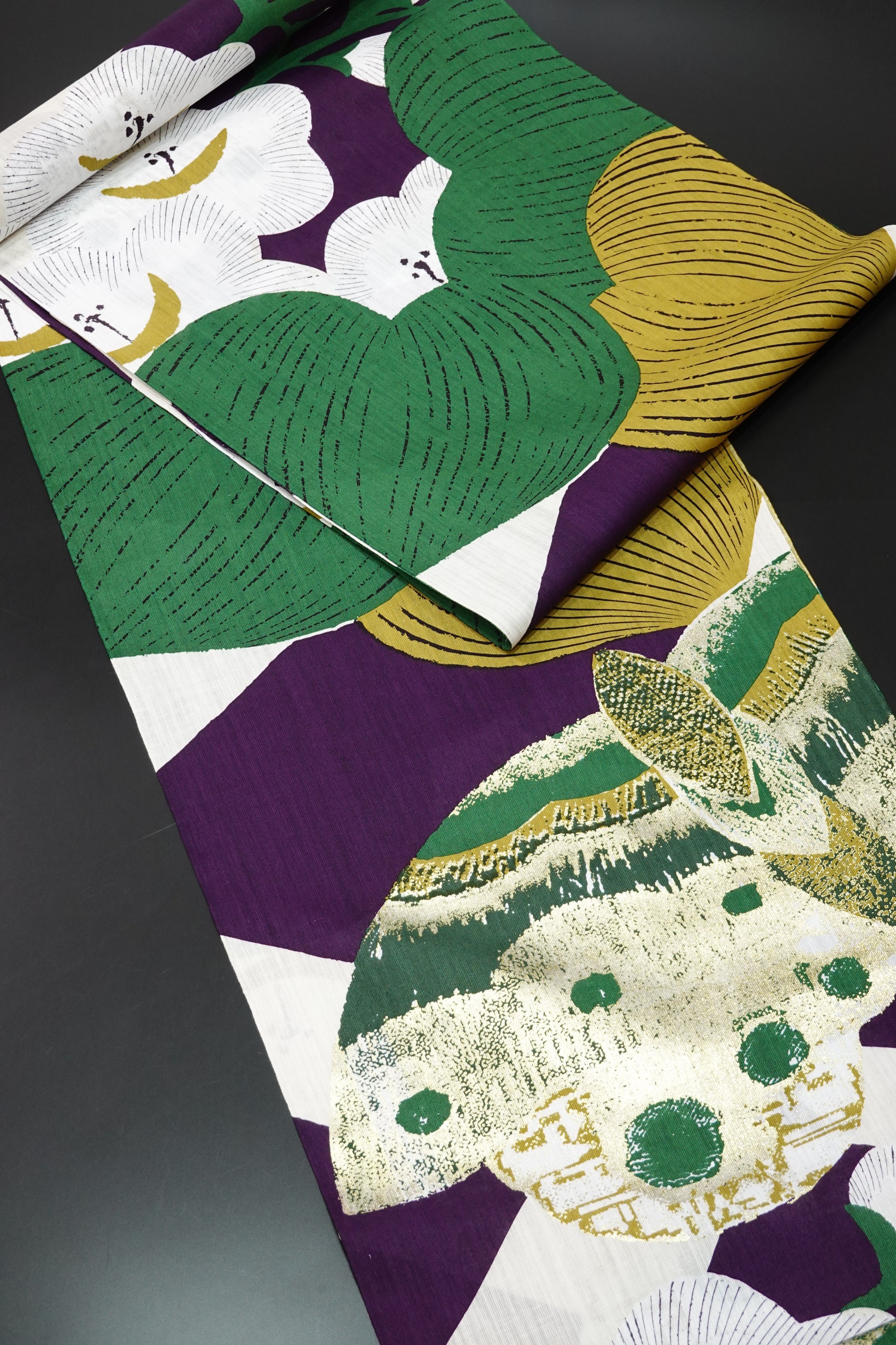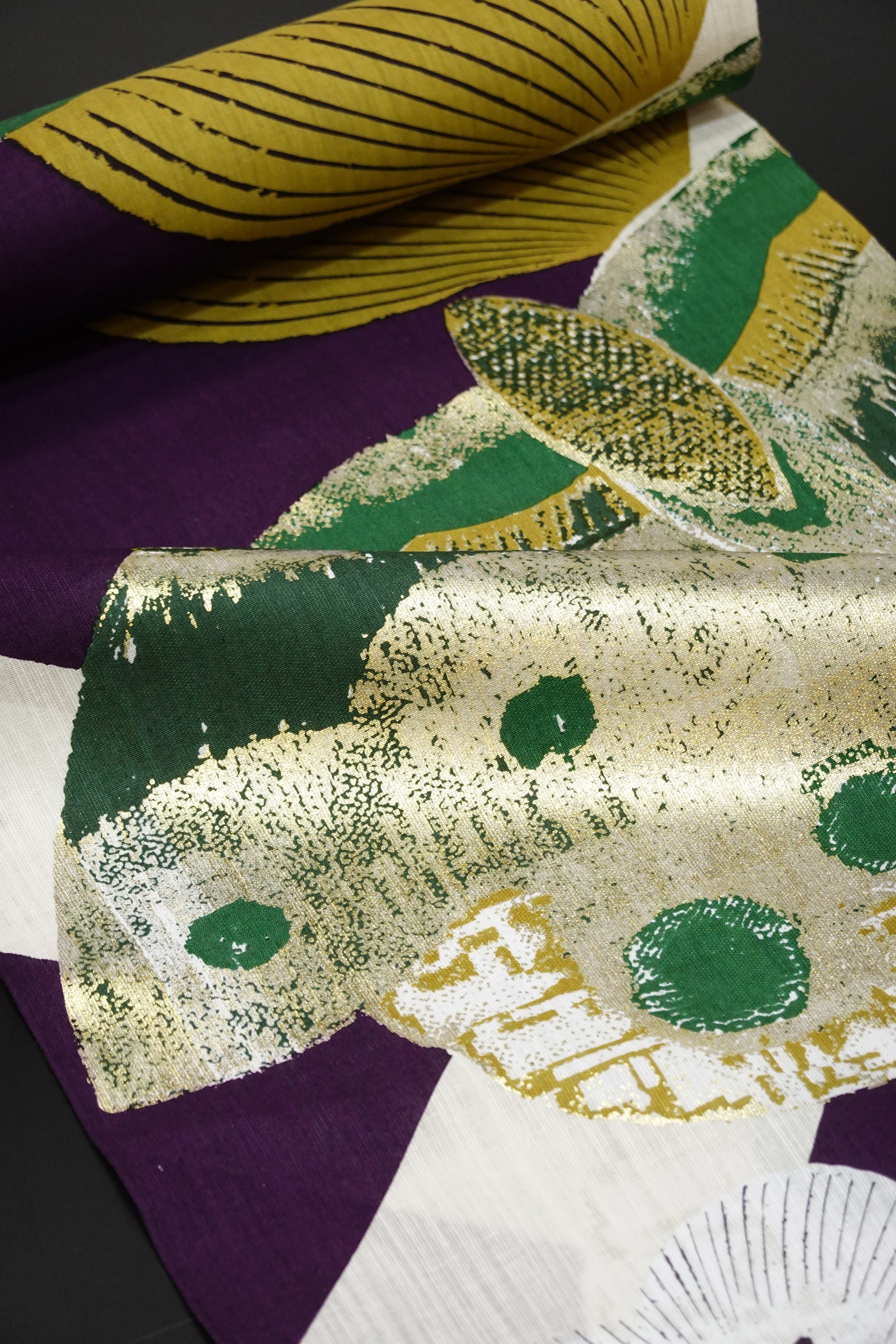 ふんだんにあしらわれた箔。浴衣といっても素材が浴衣地であるだけで、意匠や加工の凝り方は、一般で言う浴衣のそれを超えています。