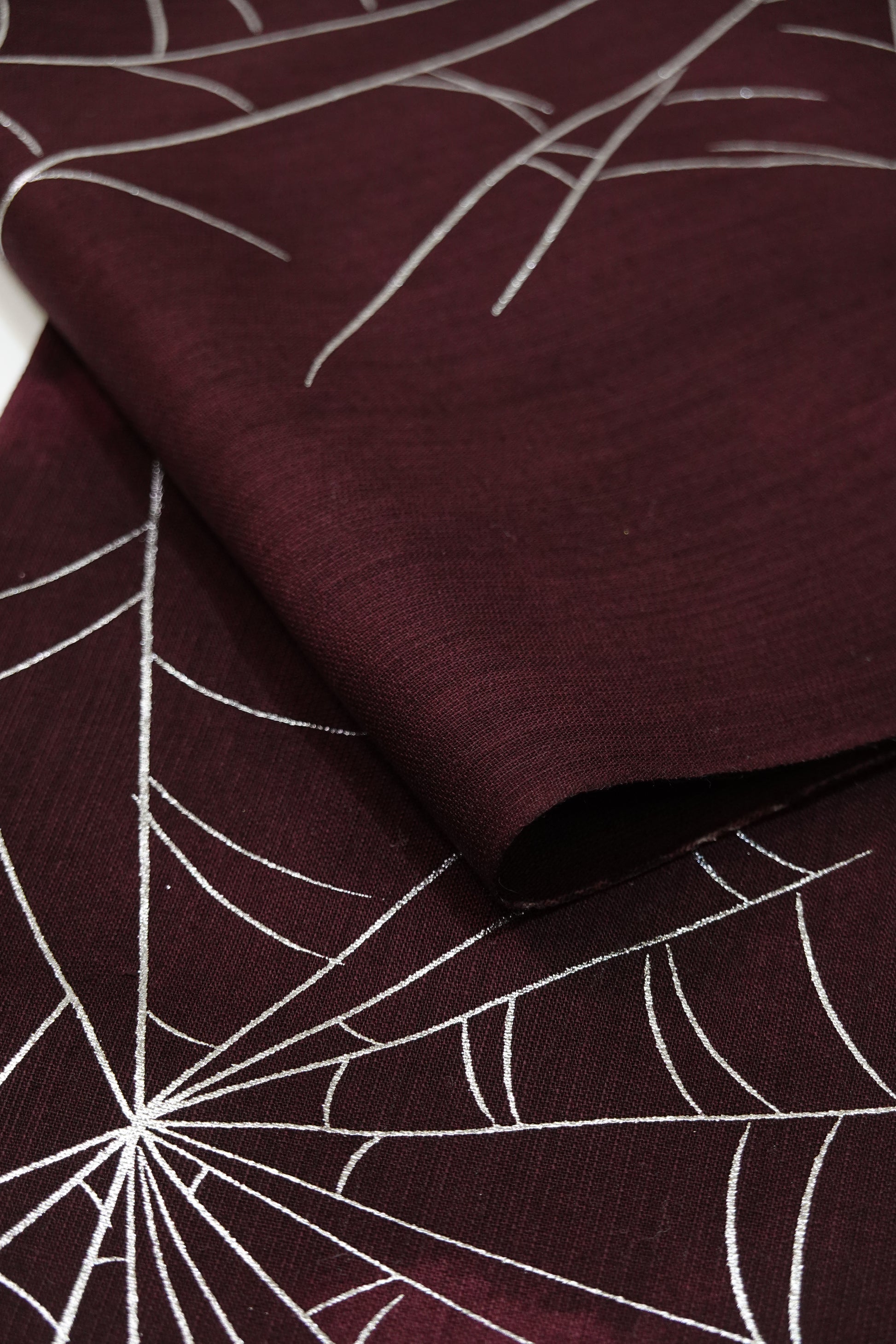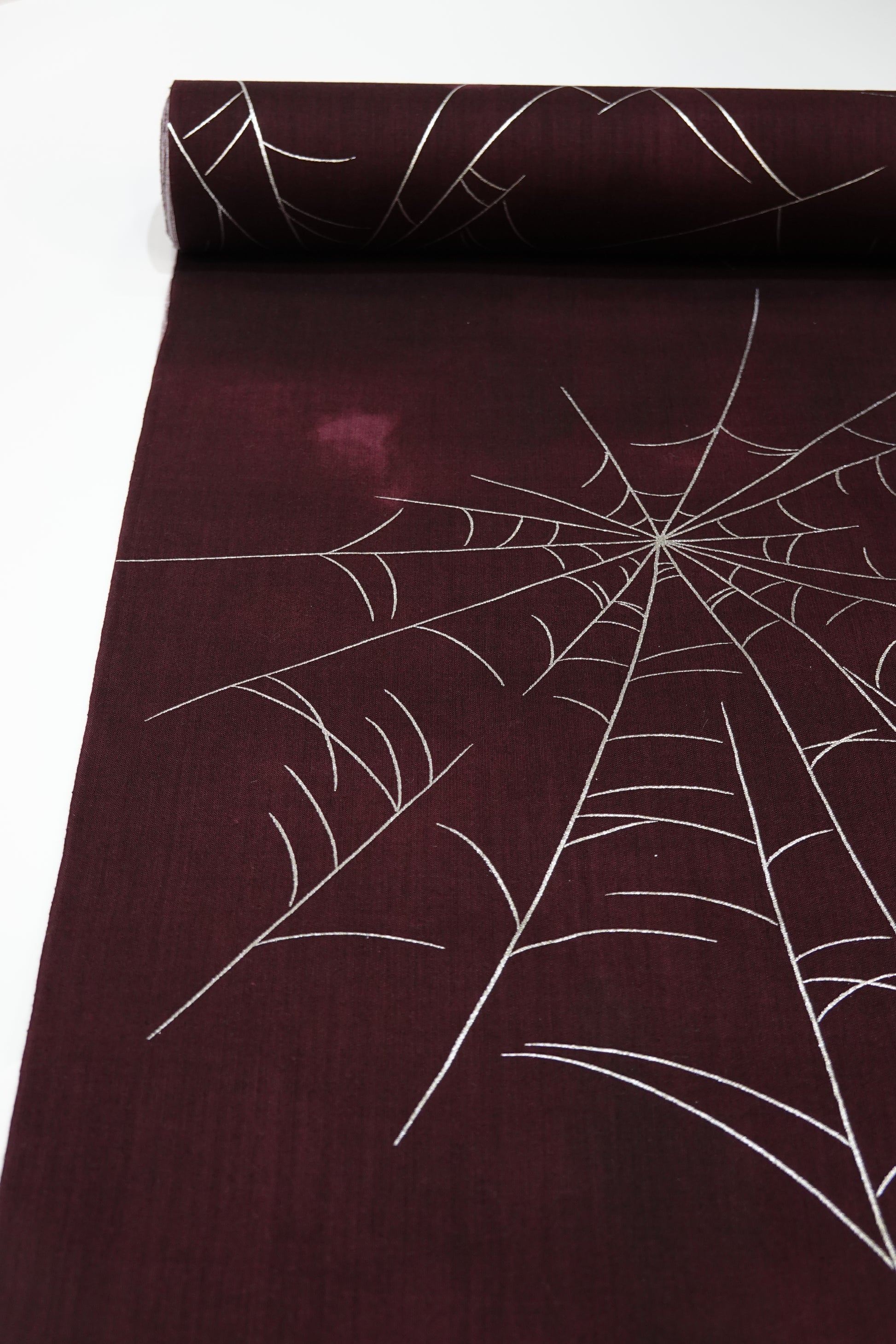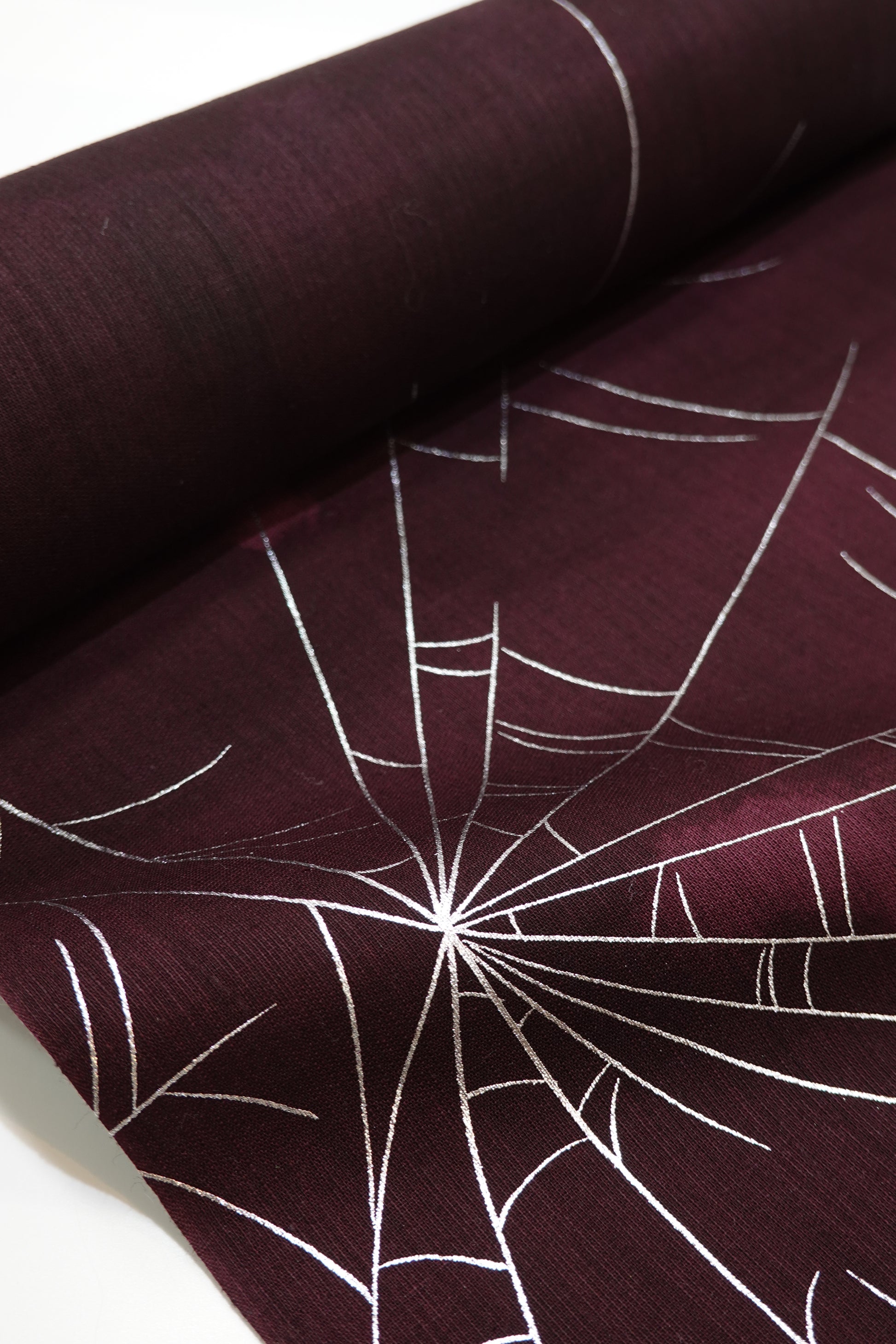 【誉田屋源兵衛】浴衣地『蜘蛛の巣』バーガンディ 箔〈綿麻〉