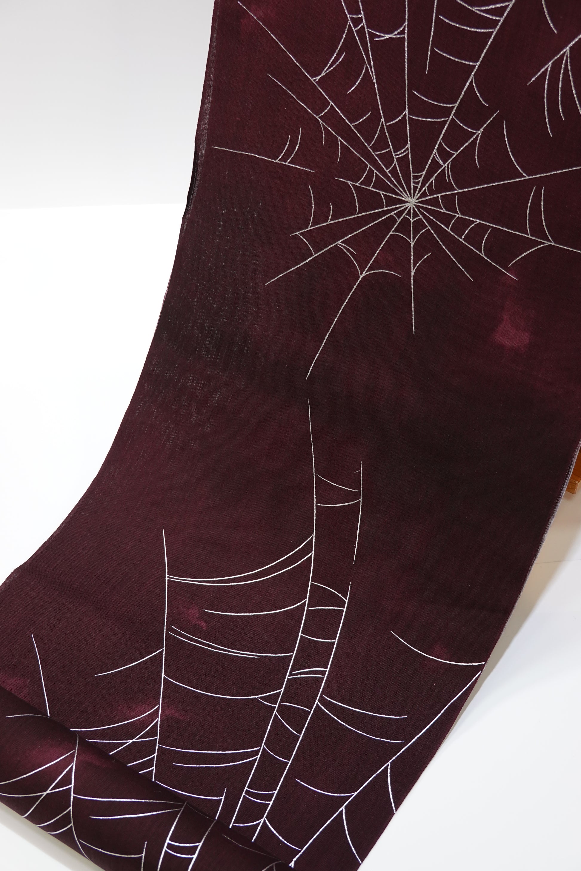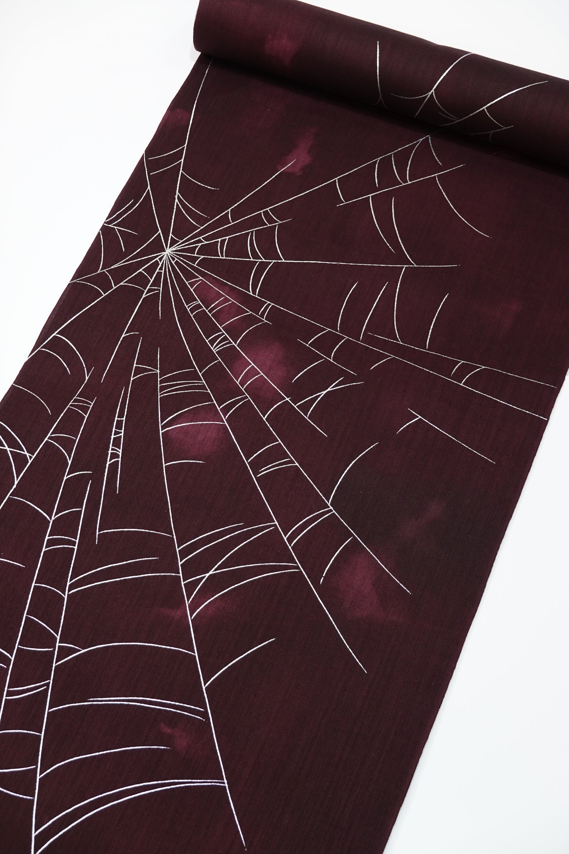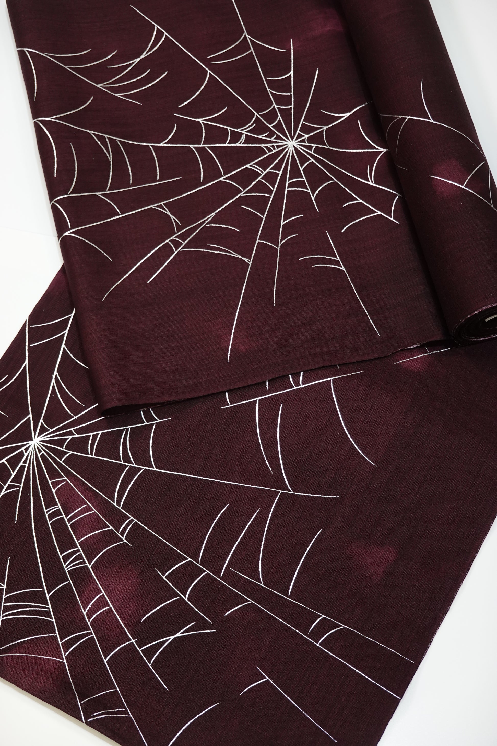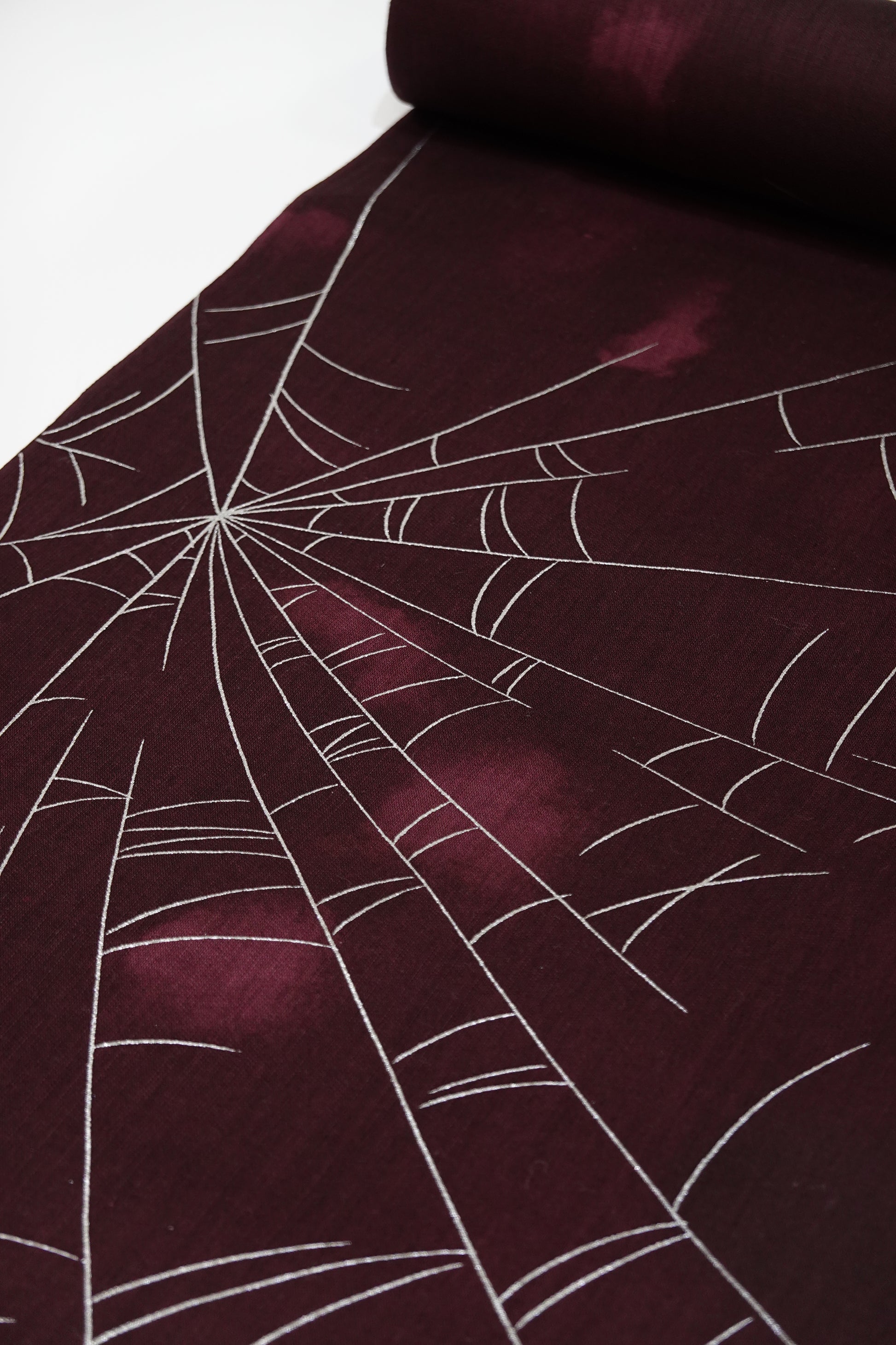 【誉田屋源兵衛】浴衣地『蜘蛛の巣』バーガンディ 箔〈綿麻〉